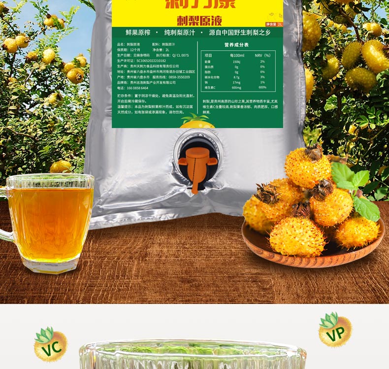 Tili Kang prickly pear juice original juice original juice fruit and vegetable juice 2 liters bag 4 catties fresh fruit puree non-golden prickly pear