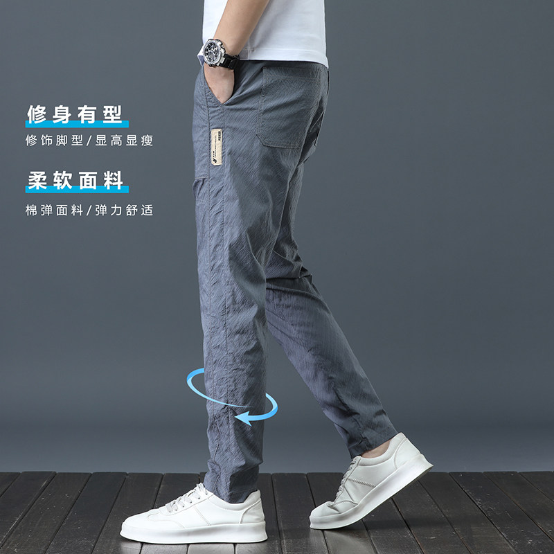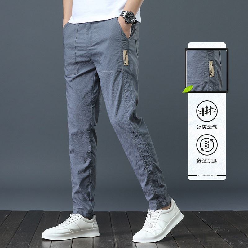 Ice Silk Pants Men's Casual Pants Summer Thin Section Loose Straight Elastic 2023 Summer Quick-drying Sports Long Pants