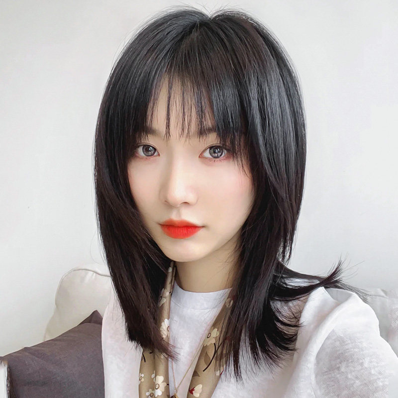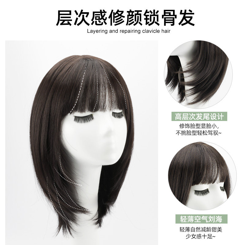 Wig Woman Short Hair Summer Nature Full Head Cover Mesh Red Round Face Lock Bone Hair Styling Simulation Long Hair Wig Sleeve