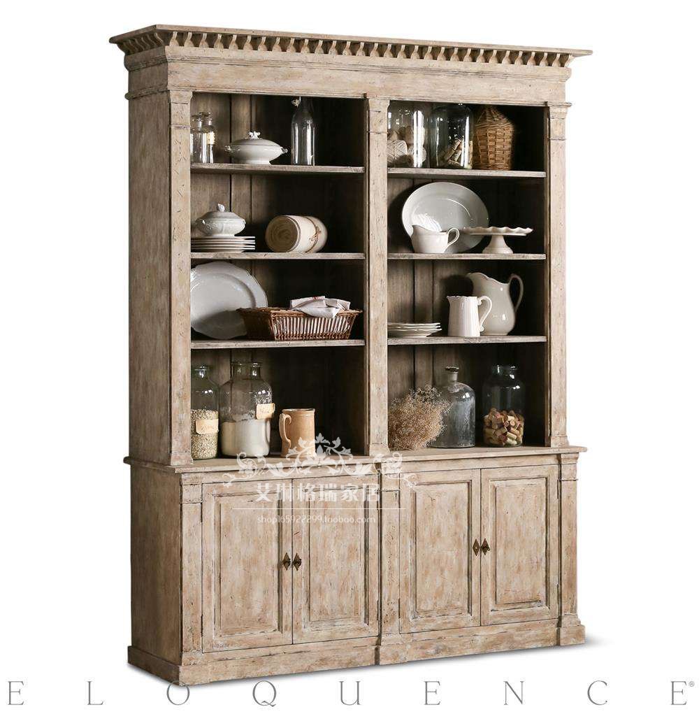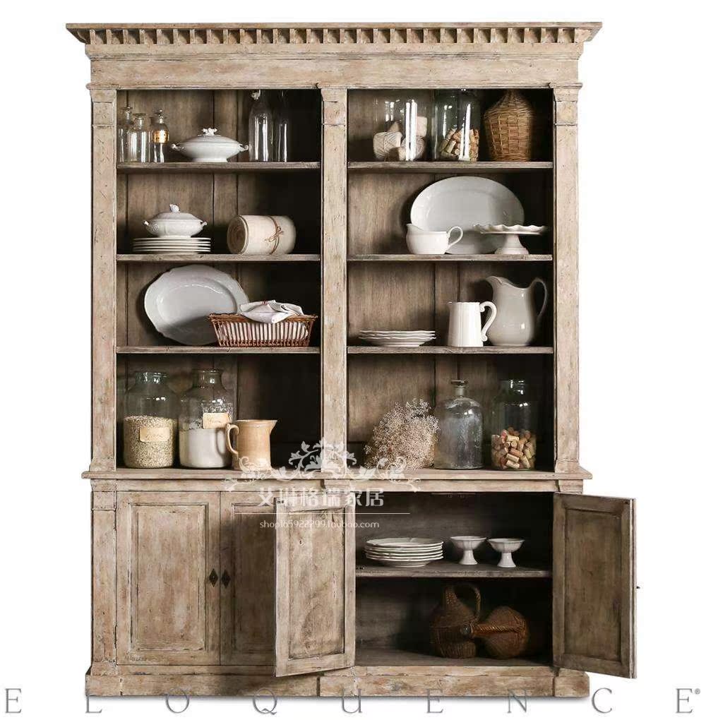 American country oak bookcase European solid wood retro old bookshelf can be installed glass door bookcase furniture customization