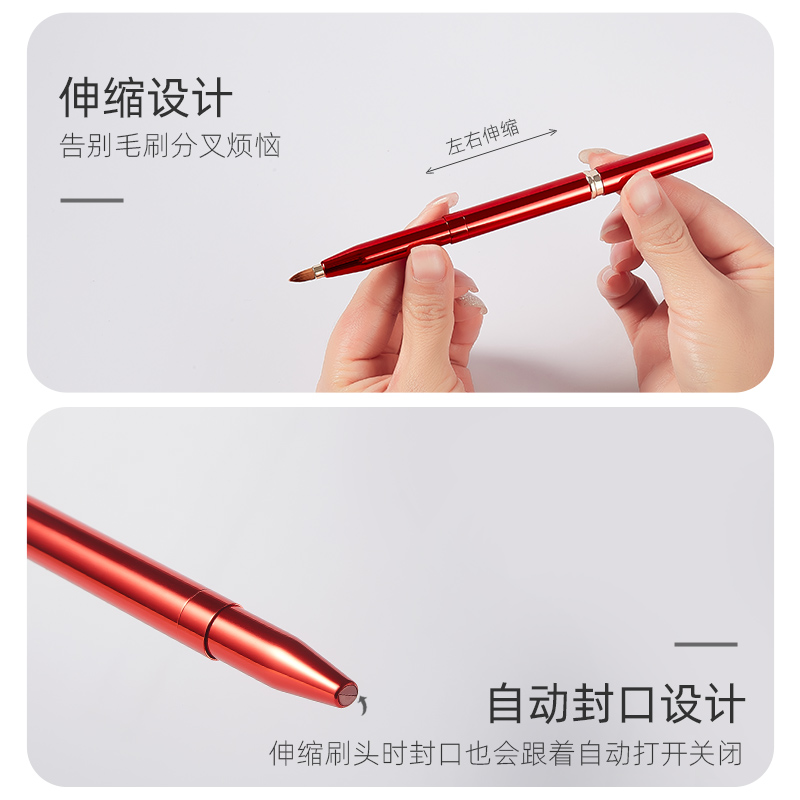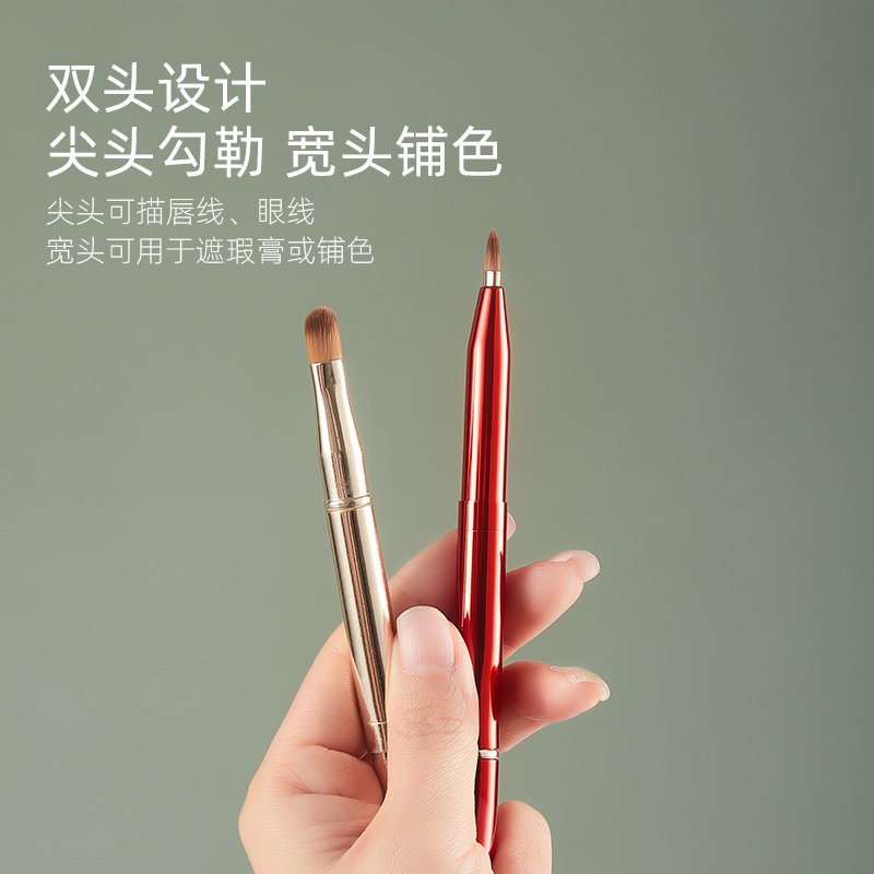 Gold (double-ended lip brush) Rose red (double-ended lip brush) Bright black (double-ended lip brush) Champagne powder (double-ended lip brush) Mint green (double-ended lip brush) Bright black (single-ended lip brush)