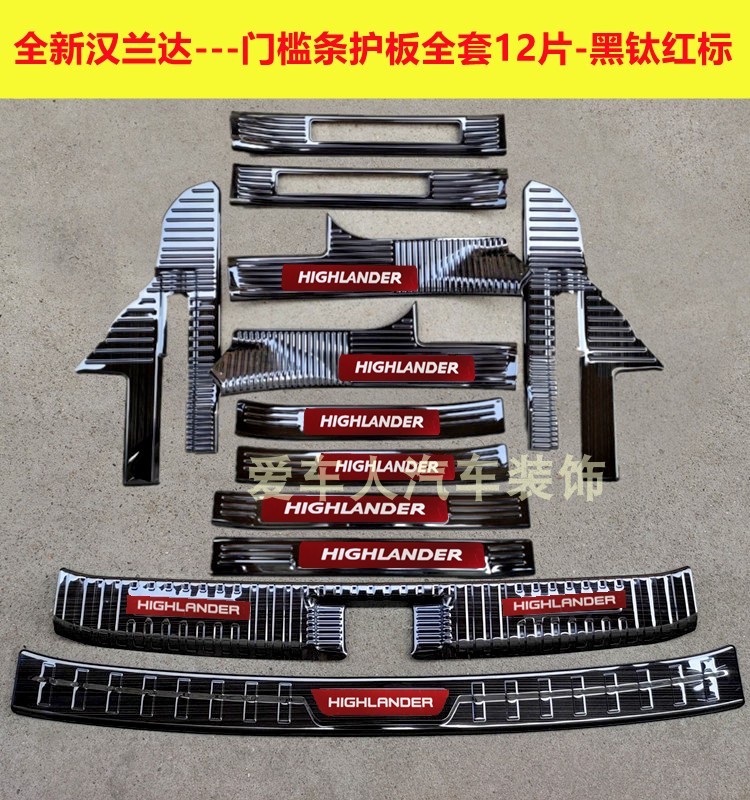 New Highlander five-door complete set 12 pieces-black titanium black label New Highlander four-door interior and exterior 10 pieces-black titanium version New Highlander four-door inner pedal 6 pieces-black titanium black label New Highlander four-door outer pedal 4 pieces -