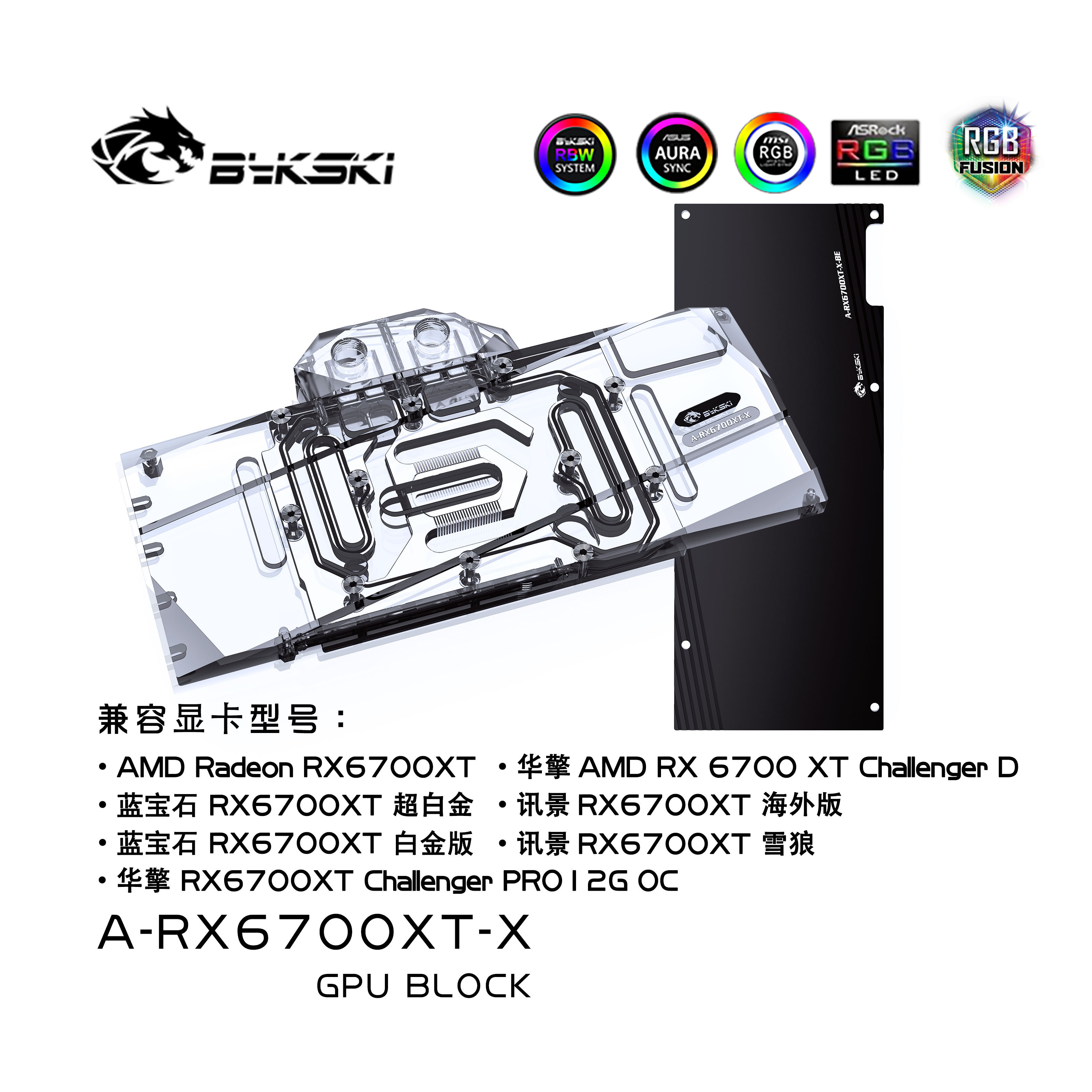 Bykski Two-style graphics card Water cooling head AMD Sapphire News version RX 6700XT ultra platinum