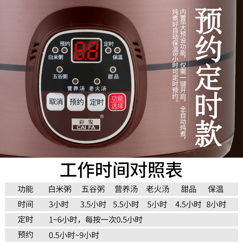 Fully automatic intelligent electric stew pot soup pot electric purple casserole household plug-in ceramic health multi-functional porridge pot