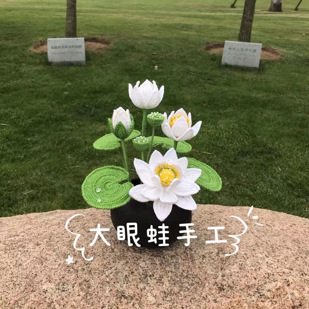 Large Eye Frog Hand Lotus Lotus Lotus 3 Tea Table Bonsai Pendulum with wool thread crochet knitted diy hand for material bag-Taobao