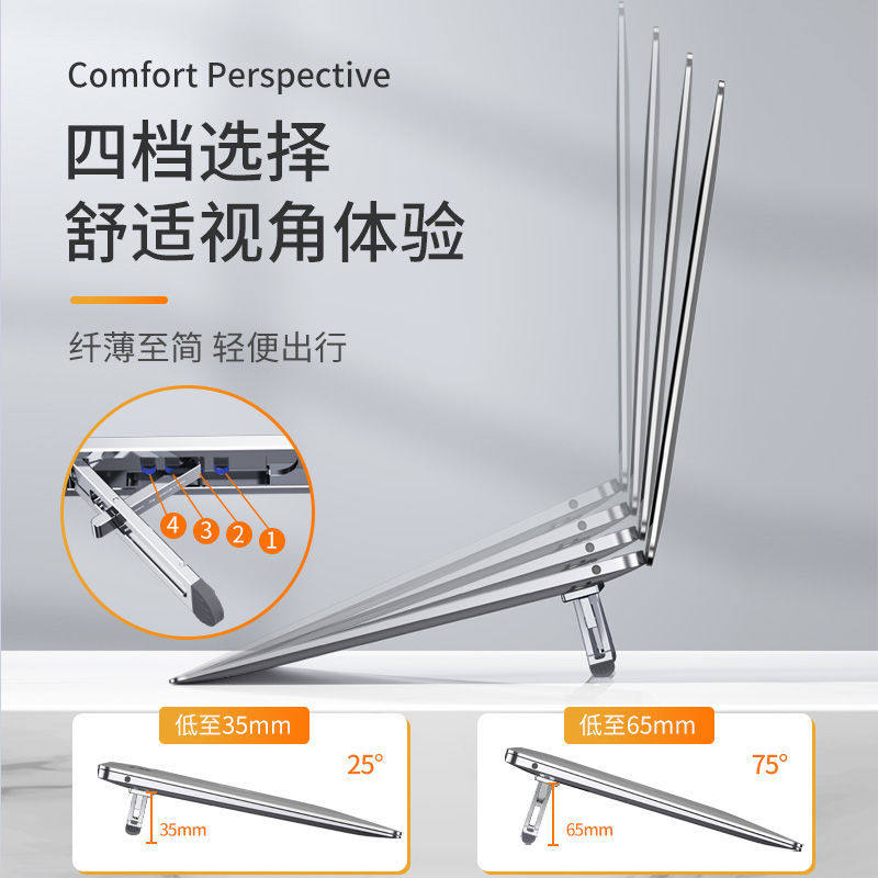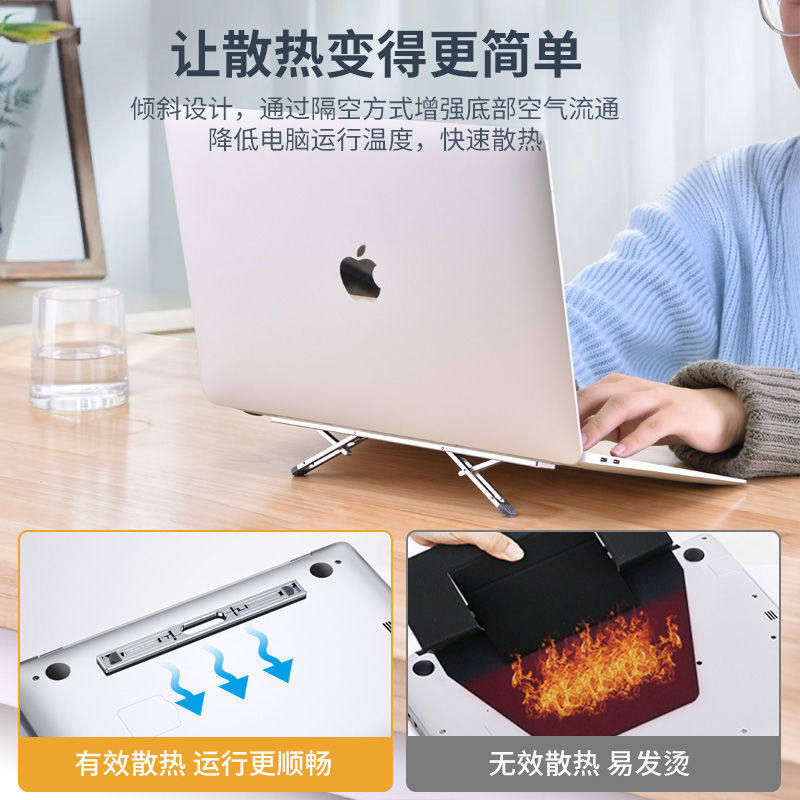 Laptop cooling bracket aluminum alloy computer elevated rack desktop flat stand base support foldable portable