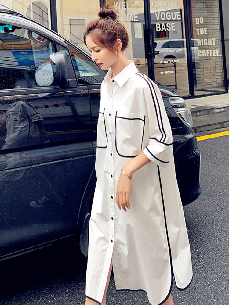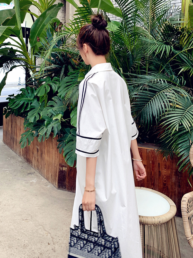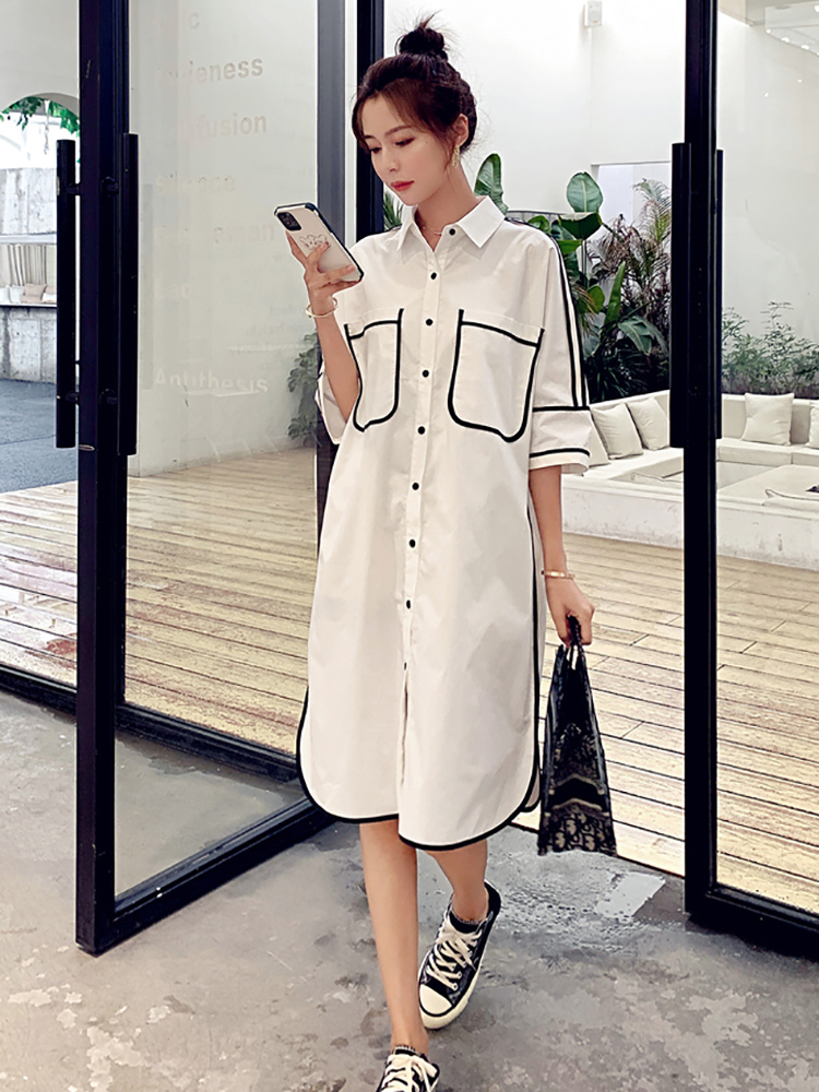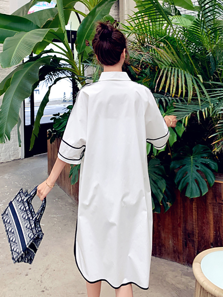 Summer Han Edition Large Scale Gestation During Pregnancy Long Edition Foreign Dress High-end Sweet Beauty Fairy Large Moon Share White Laced Shirt Dress
