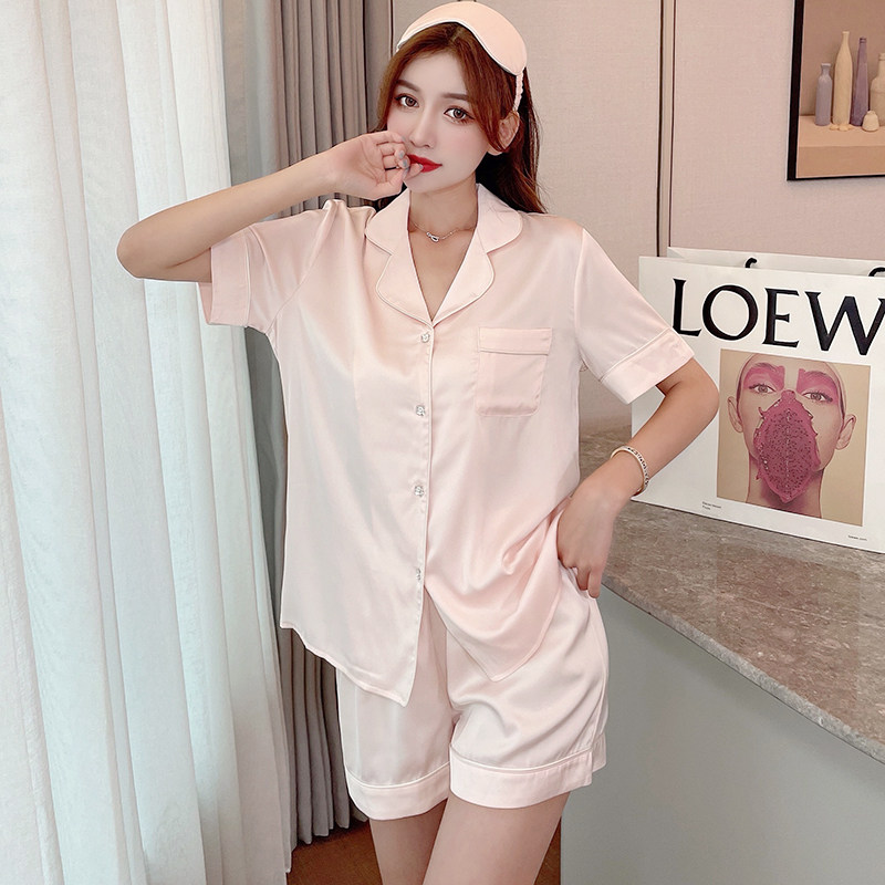 (square diamond buttons) ice silk 2022 new net red pajamas women's short-sleeved home service satin two-piece summer