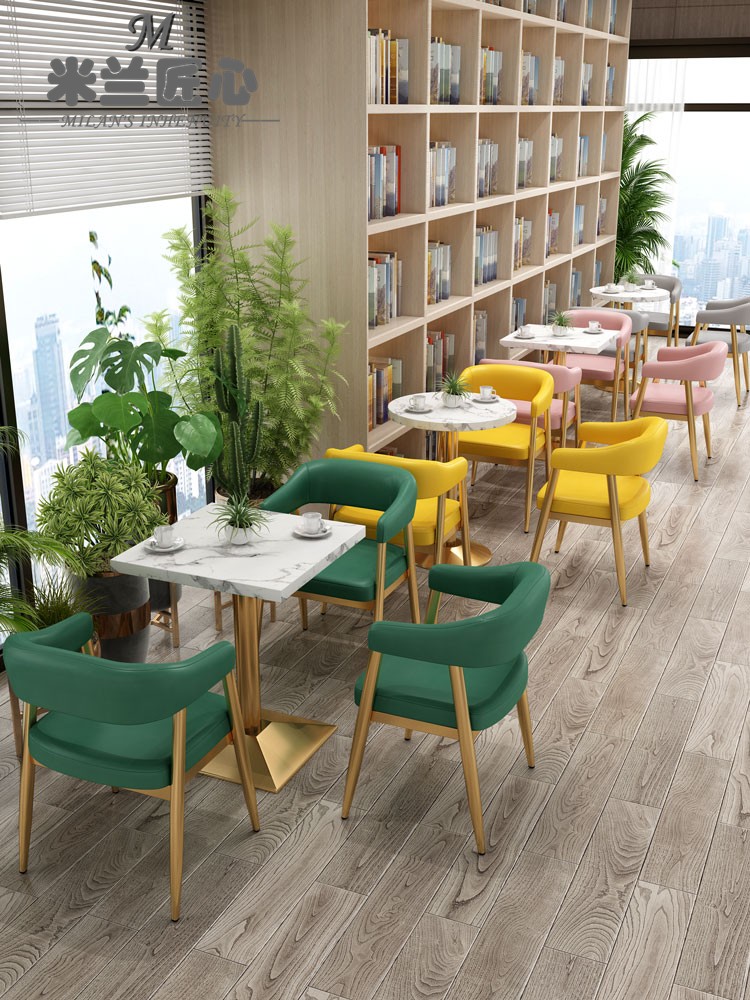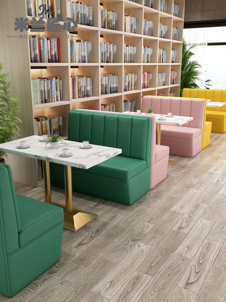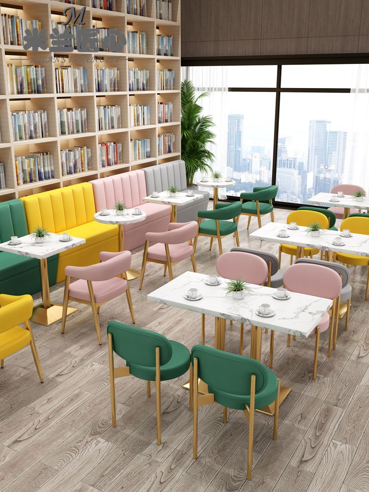 Simple milk tea shop table and chairs catering coffee barbecue burger dessert shop restaurant dining room against the wall card seat sofa combination