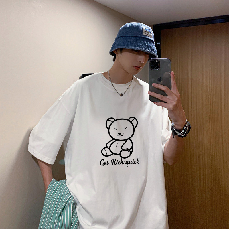 Summer Short Sleeve T-Shirt Male Loose Trend Middle Sleeve Port Wind Couple Blouse and Hip Hop hip hop slim fit half sleeve summer dress
