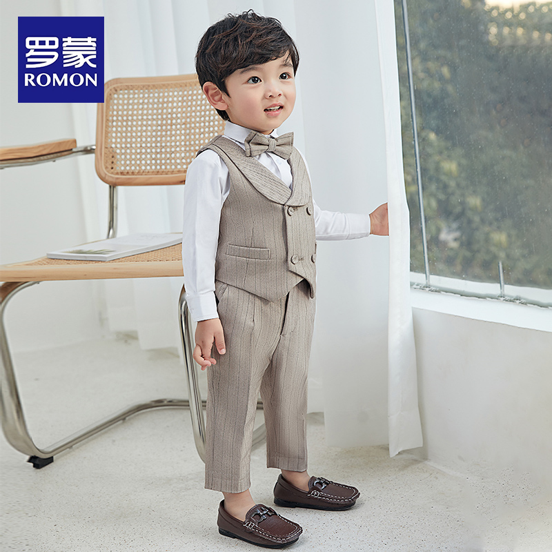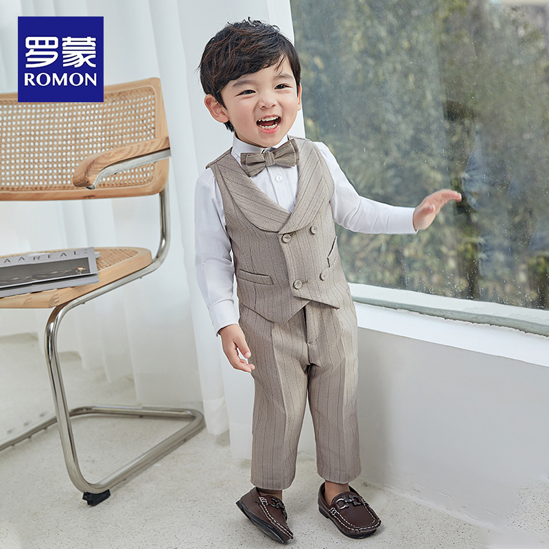 Lomon Children's Suite Boy Flower Dress Boy's Day Boy Baby's Birthday Three Pieces of Horse Set