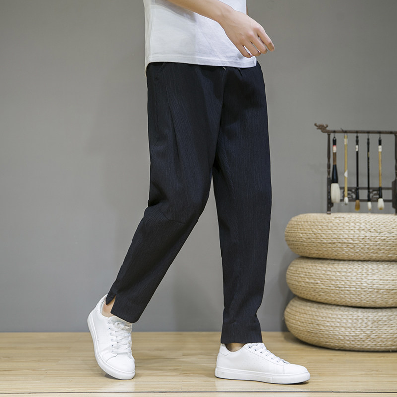 Linen Casual Pants Long Pants Men's Summer Ice Silk Men Breathable Sports Smoke Tubes Pants Slim cotton linen 90% Harun pants