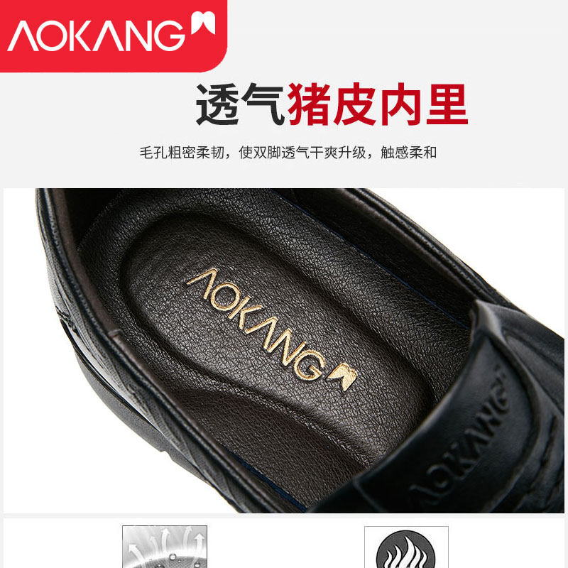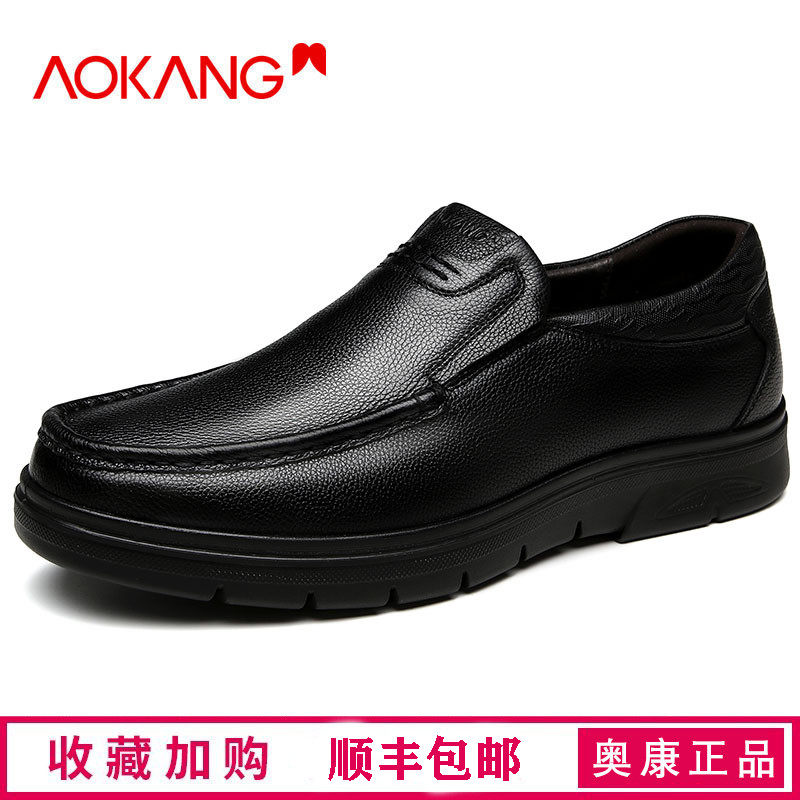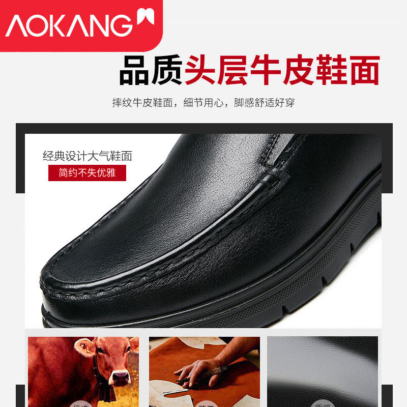 Aokang leather shoes men's breathable and comfortable middle-aged and elderly leather soft bottom business casual thick bottom round head black men's leather shoes