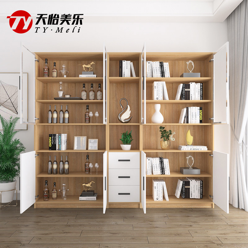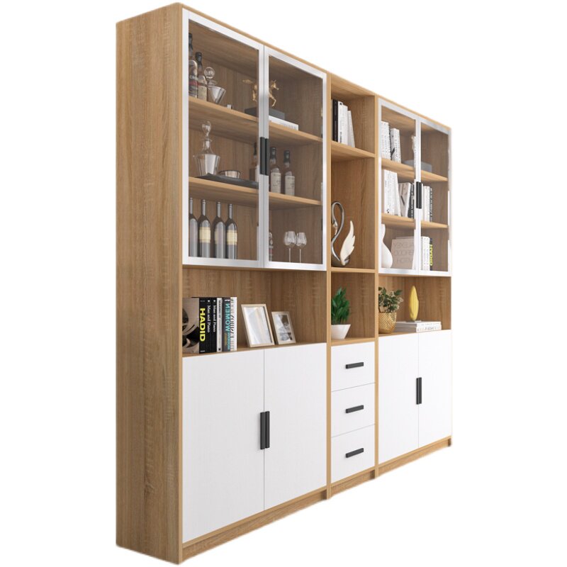 Customized modern minimal combination glass bookcase small household bookcase locker low-box drawer furniture