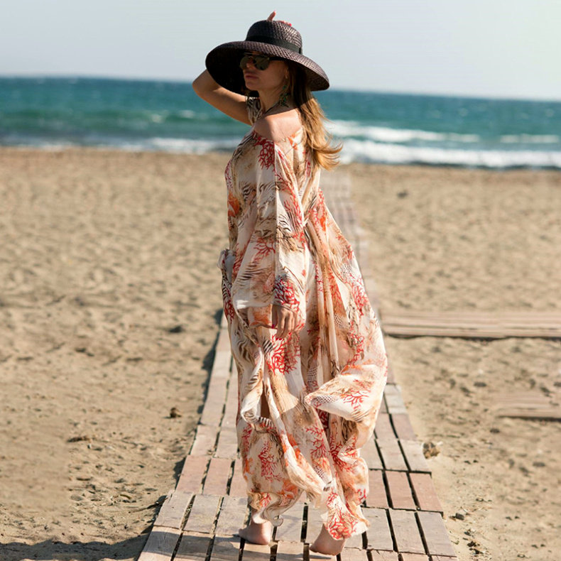 Loose plus size beach dress with meat-covered slim bikini blouse swimsuit coat holiday cardigan sunscreen clothing