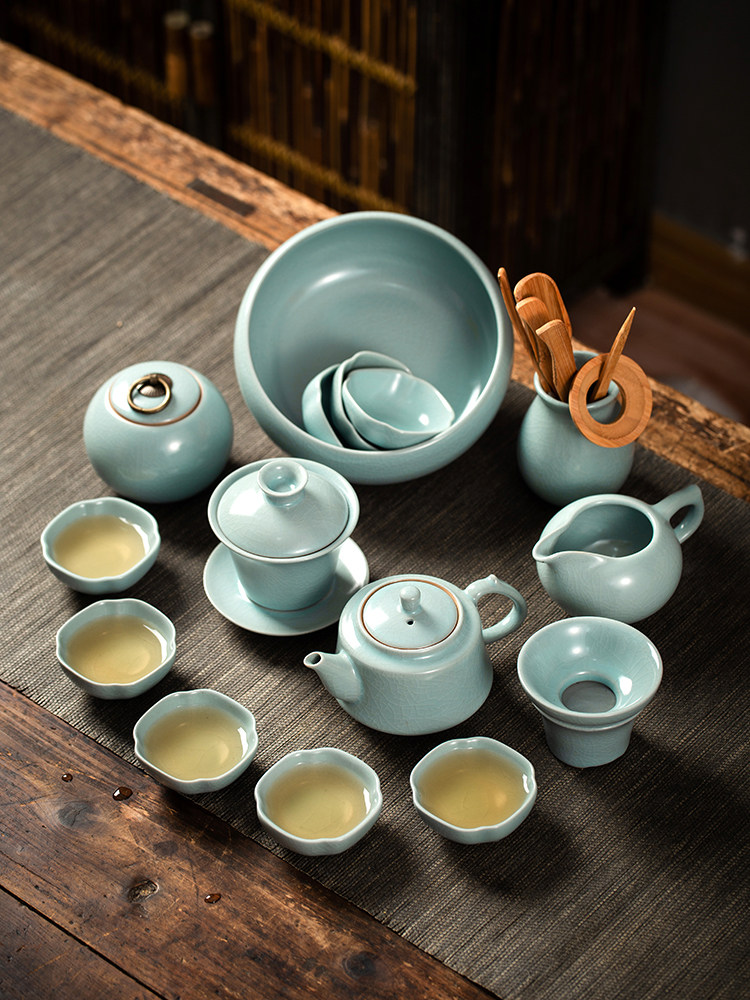 Jingdezhen Ruyao Kung Fu Tea Set Home Office Guests Chinese Teapot Tea Cup High-end Gift Box
