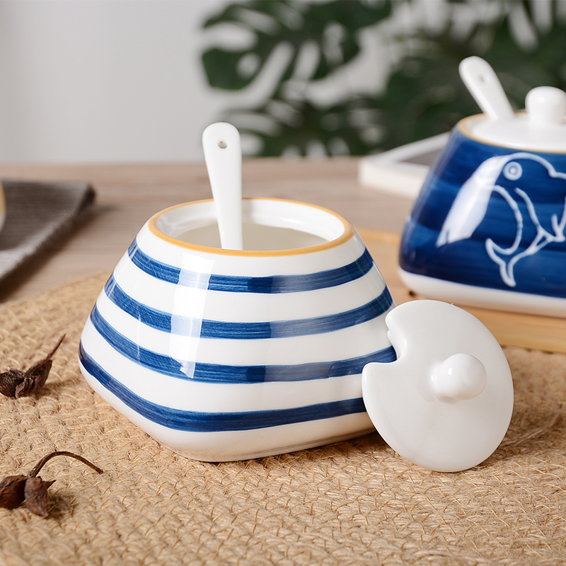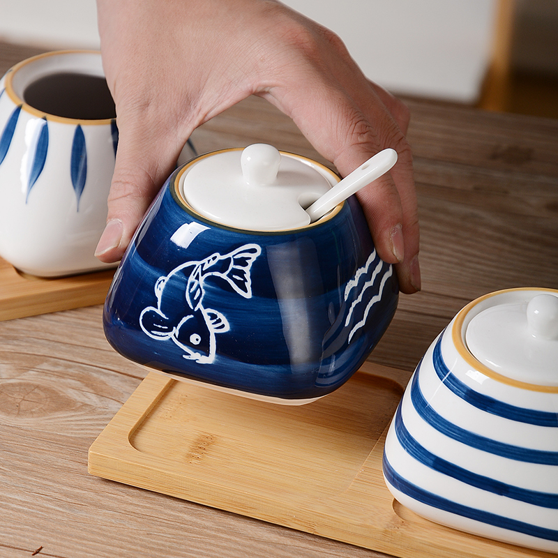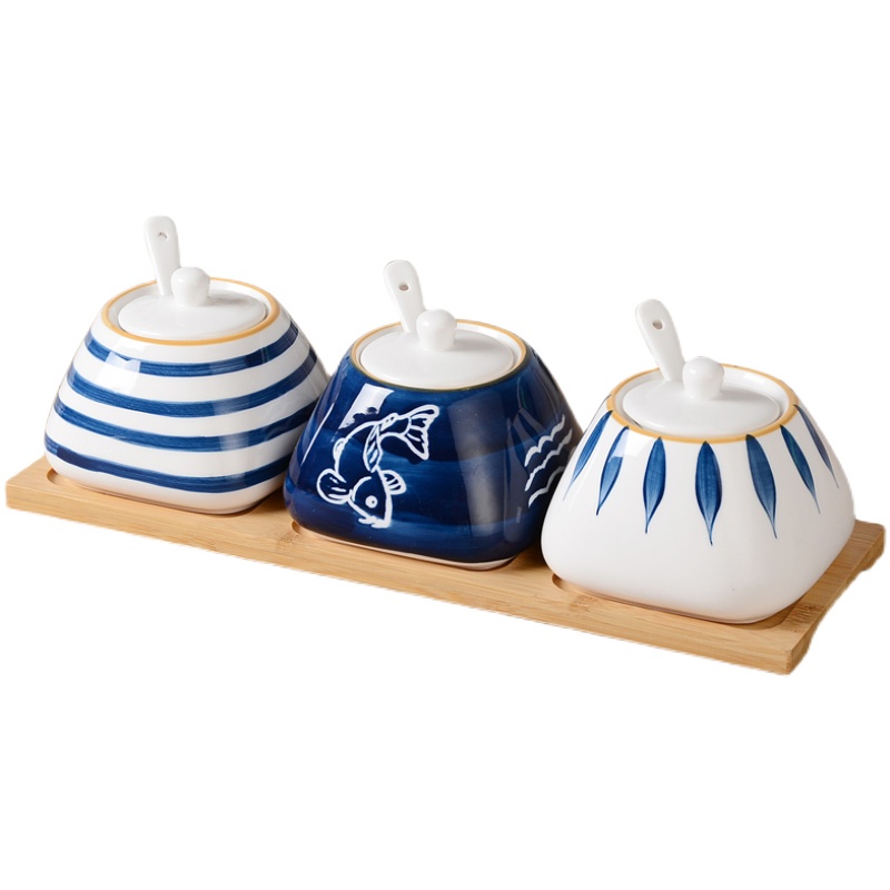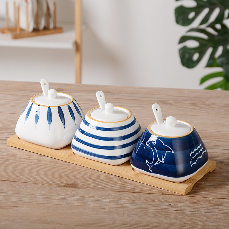 Three full sets of ceramic salt jar seasoning seasoning box Japanese-style seasoning jar household seasoning bottle combination kitchen salt shaker