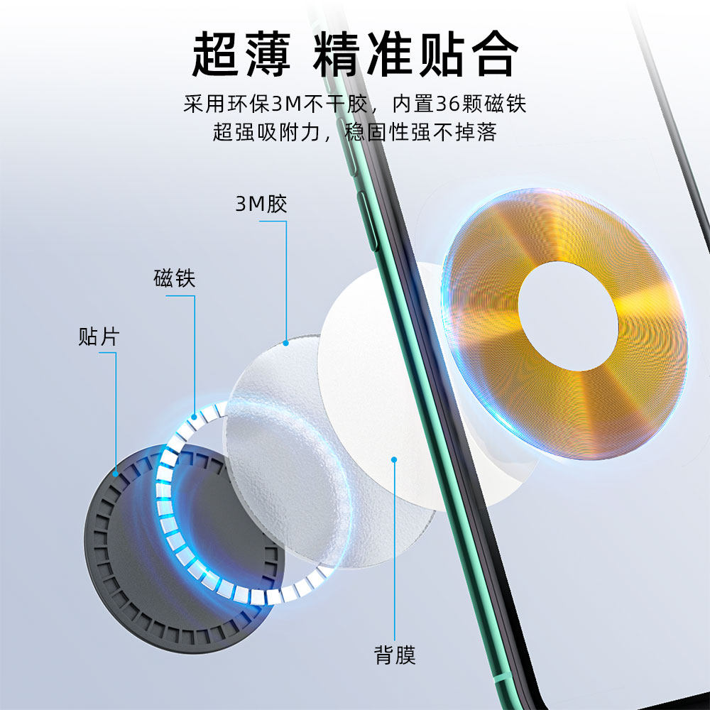 ESSAGER Yesto magnetic sheet patch on-board mobile phone holder magnet patch magnetic patch magnetic suction car with suction cup magnet sheet suitable for Huawei Apple 12 wireless charging phone accessories adhesive style