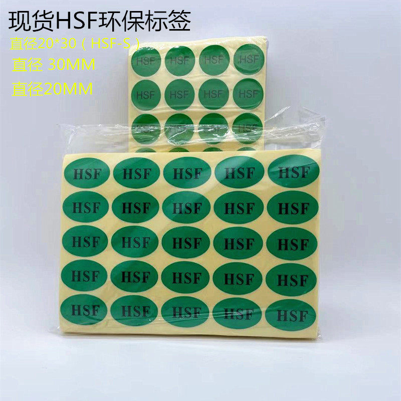 HSF self-adhesive label no harmful substance logo round oval HSF-S sticker diameter 20MM green environmental protection