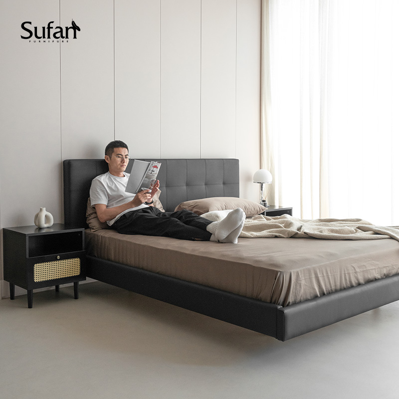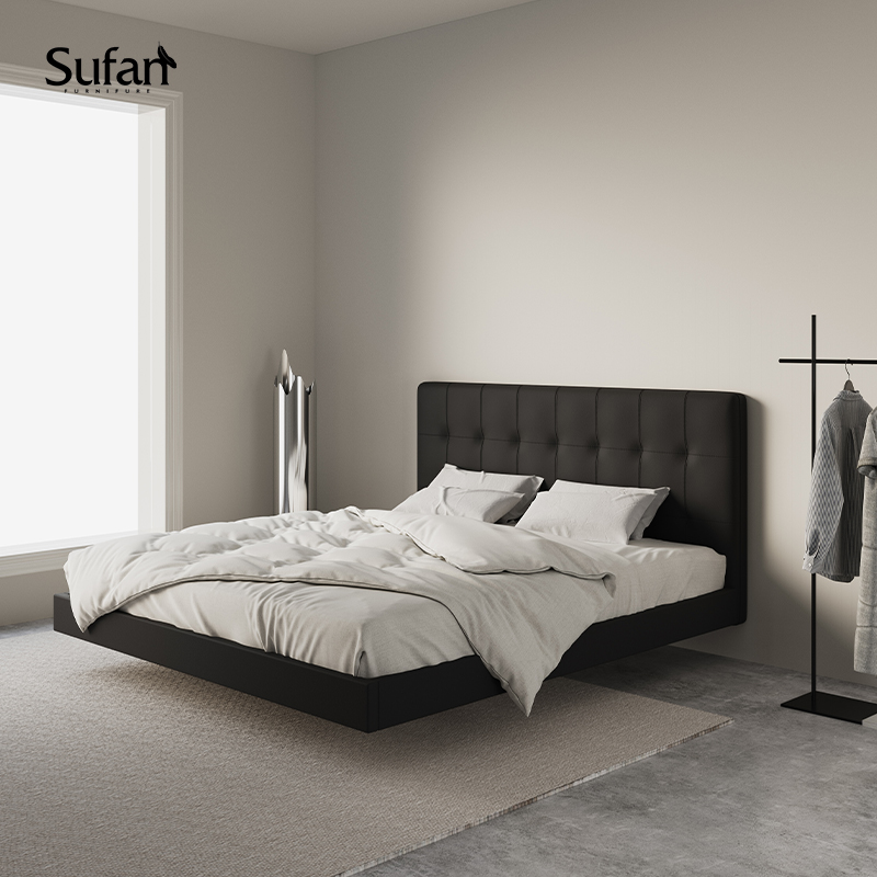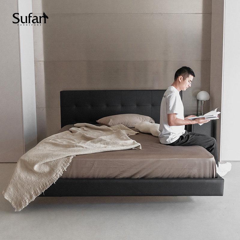 SUFAN Shufan Italian minimalist suspended bed solid wood nappa first layer leather double wedding bed 1 8 meters 1 5 meters