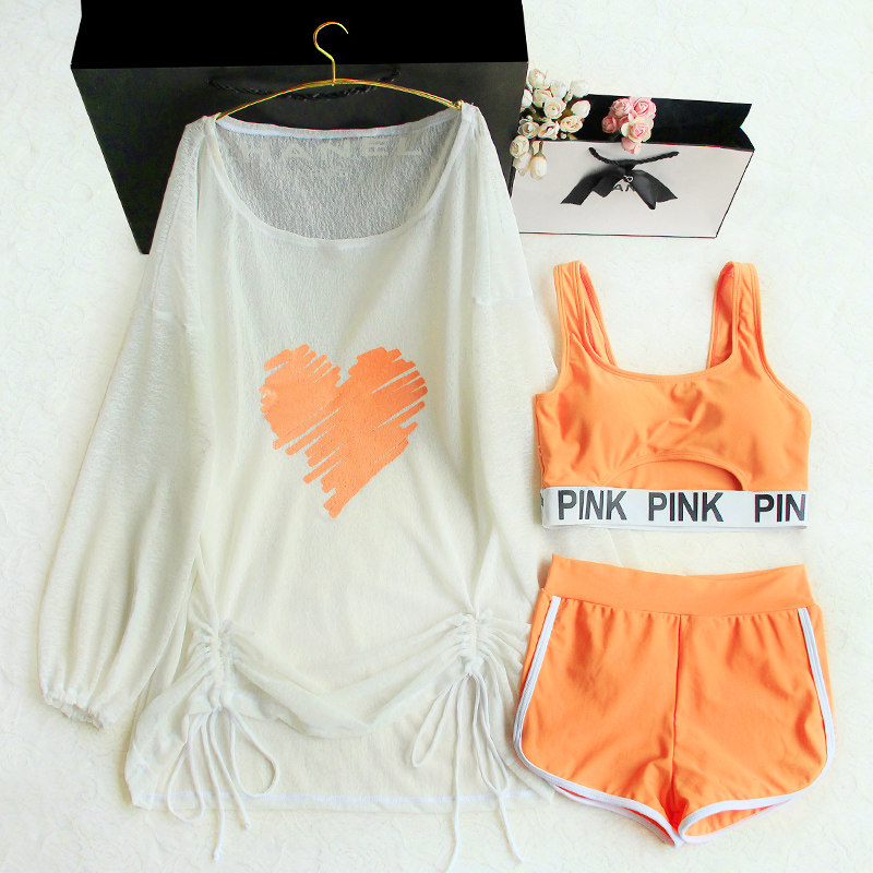 Swimwear women's summer sports hot spring three-piece sunscreen long-sleeved blouse covering the flesh and looking thinner large size slightly fat mm swimsuit