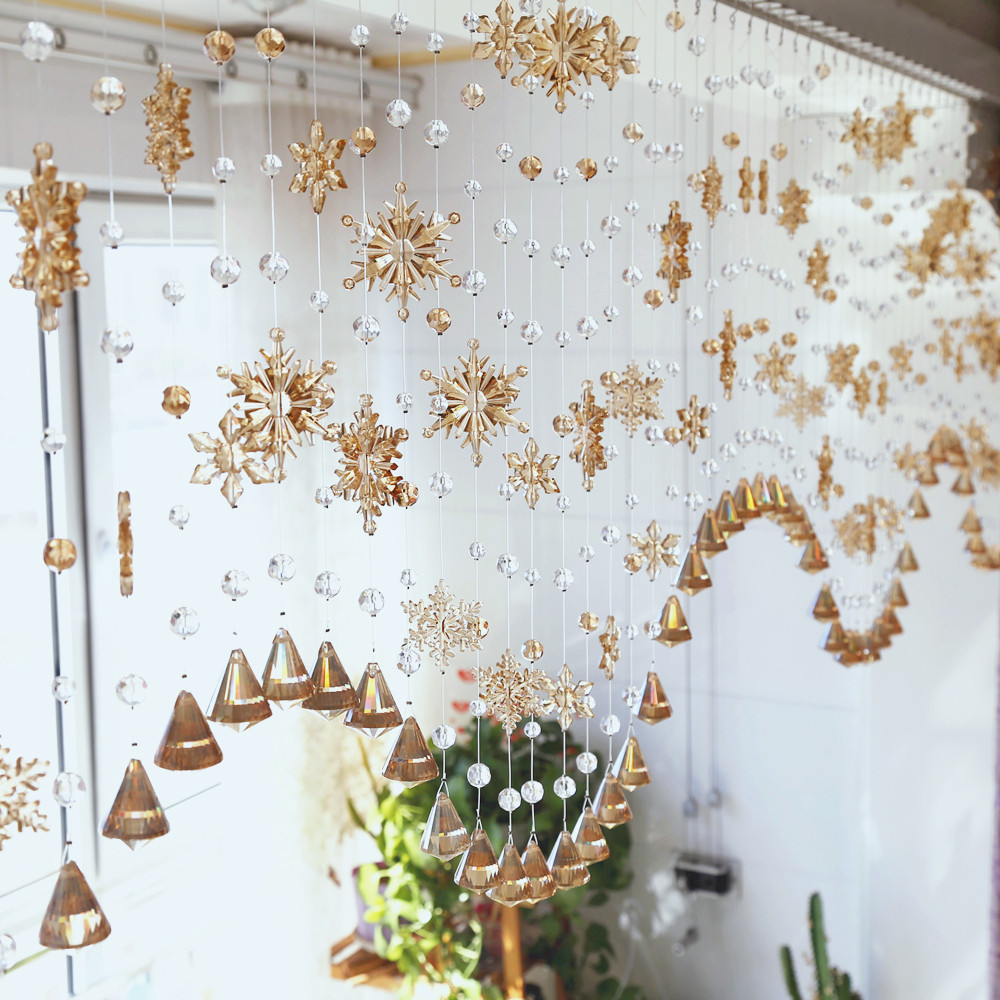 Modern light and luxurious crystal glass bead curtain living-room Xuanguan partition bedroom string bead door curtain free of perforated wedding room decoration red