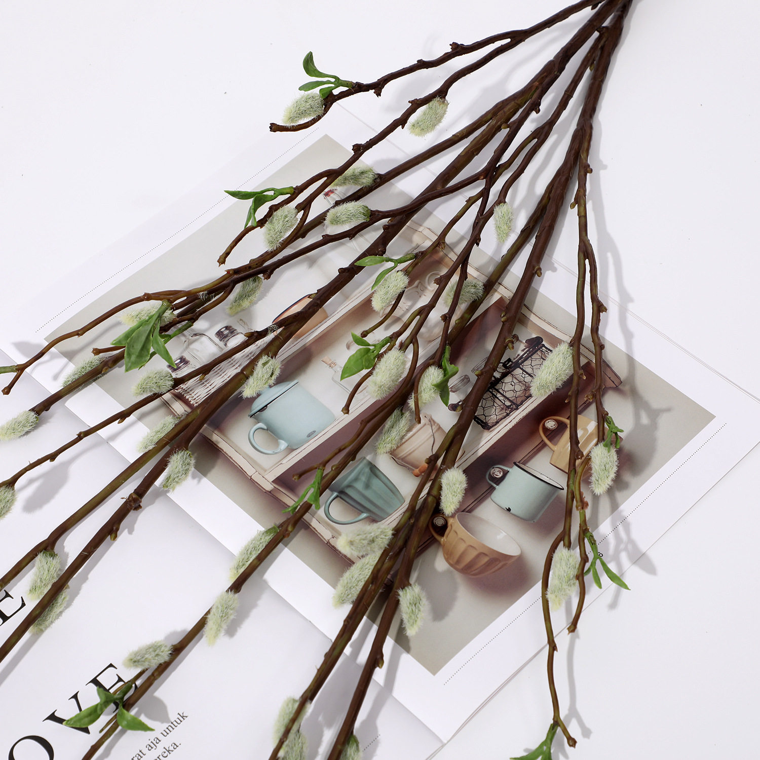 Light luxury modern porch coffee table table planting silver willow hotel indoor office floral decoration simulation fake cat willow