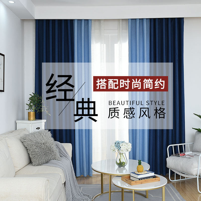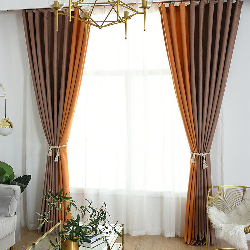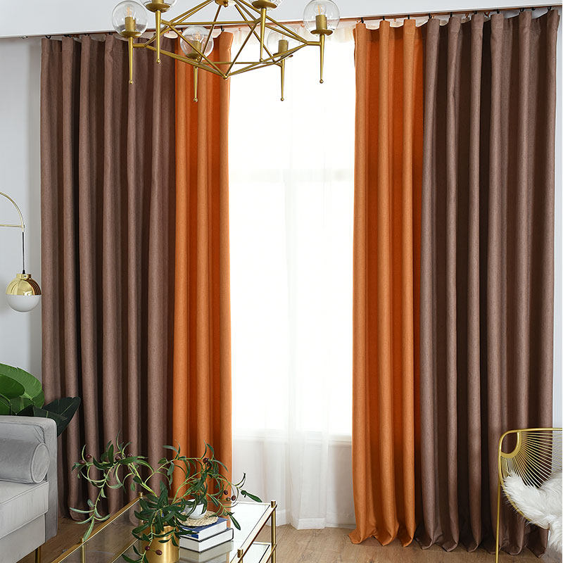 Solid color matching high shading curtain fabric custom meteor hemp curtain finished product simple modern floating window bedroom cloth