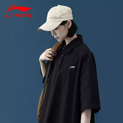 Li Ning short sleeve polo shirt men and women couples summer Japanese College trend loose leisure cotton lapel half sleeve t-shirt