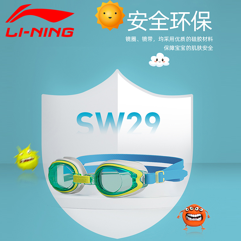 Li Ning Children's swimming goggles swimming hat girl boy high definition waterproof anti-fog swimming glasses professional diving equipment suit