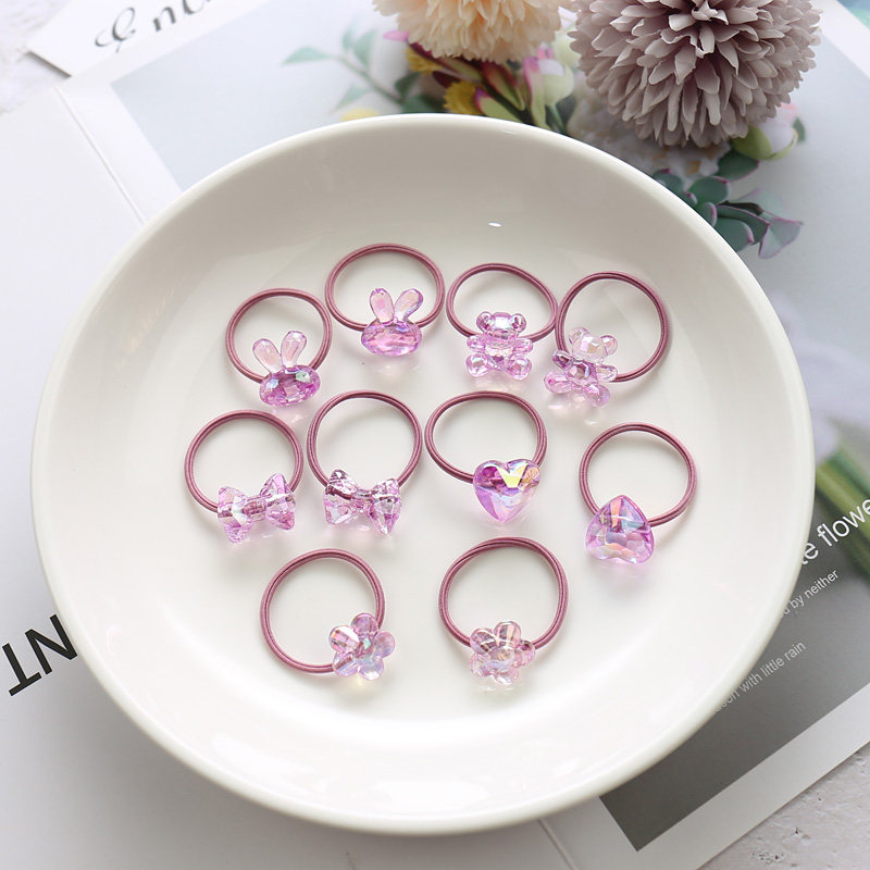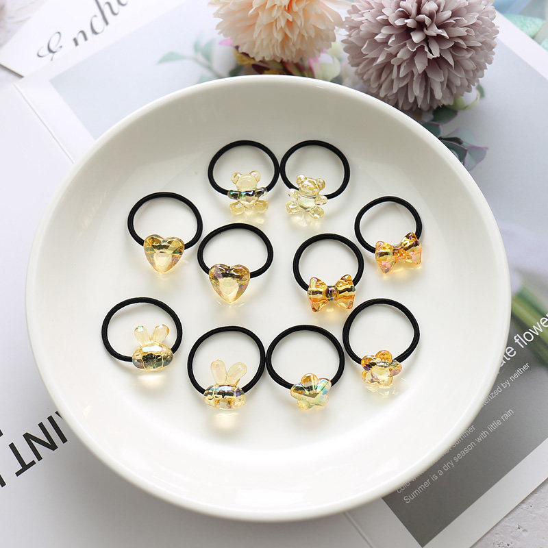 Children rubber gluten hair ring fresh and transparent cartoon resin small hair ring baby hair ring without injury 10 pieces of girl hair accessories summer