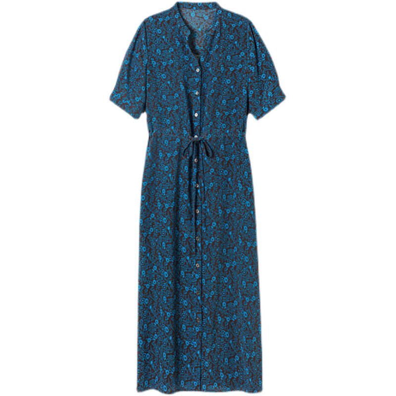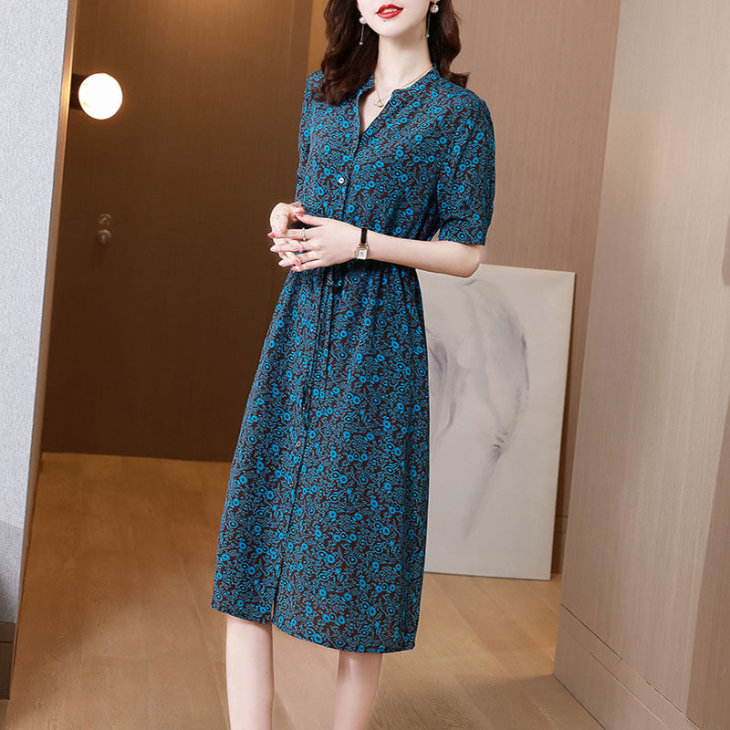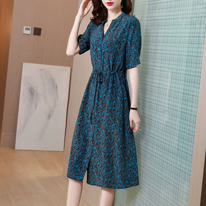 Design sense floral silk dress 2022 summer new V-neck slim intellectual mulberry silk shirt mid-length skirt