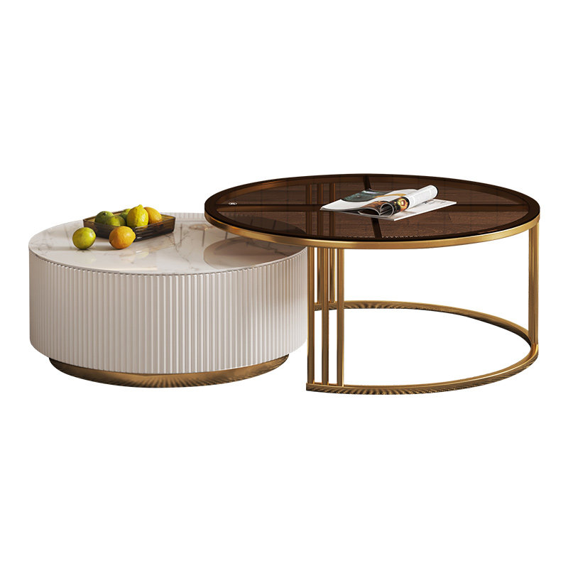 Light luxury round bright slate coffee table combination