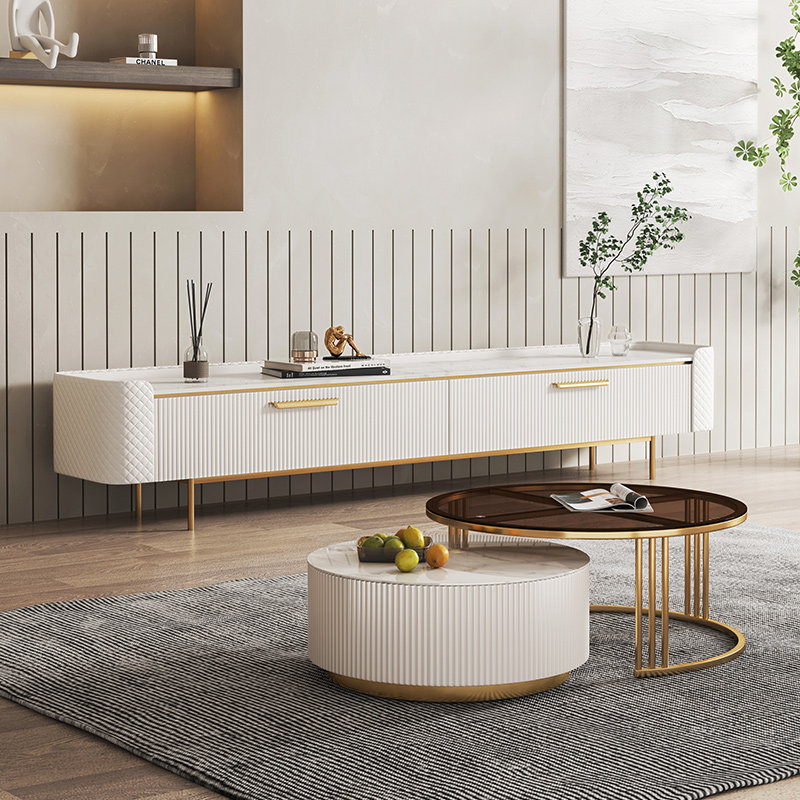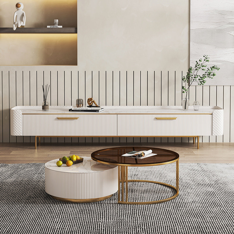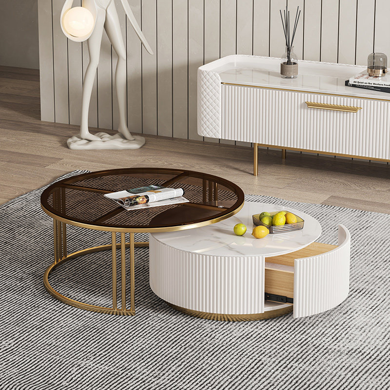 Dasima Light luxury bright slate coffee table round small apartment living room modern minimalist coffee table TV cabinet combination