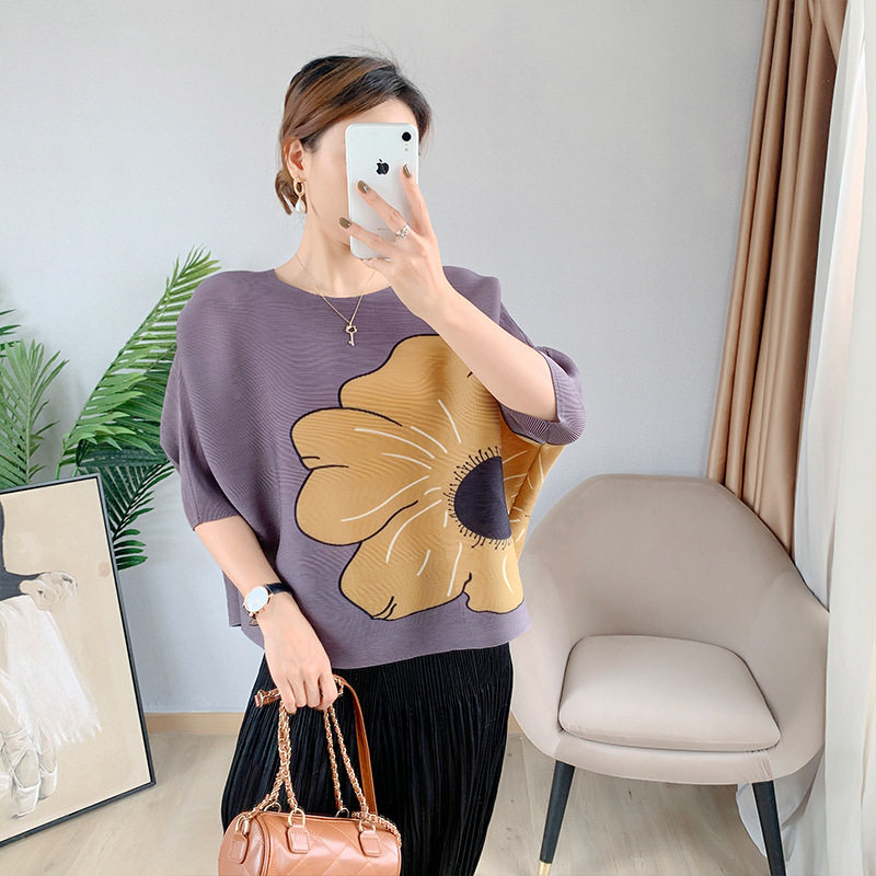 Triple Mansion Folds Summer Short Sleeve T-shirt Woman 2021 New Loose Foreign Pie Big Size Cover Tummy Blouse Short