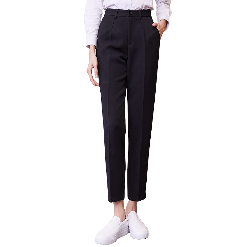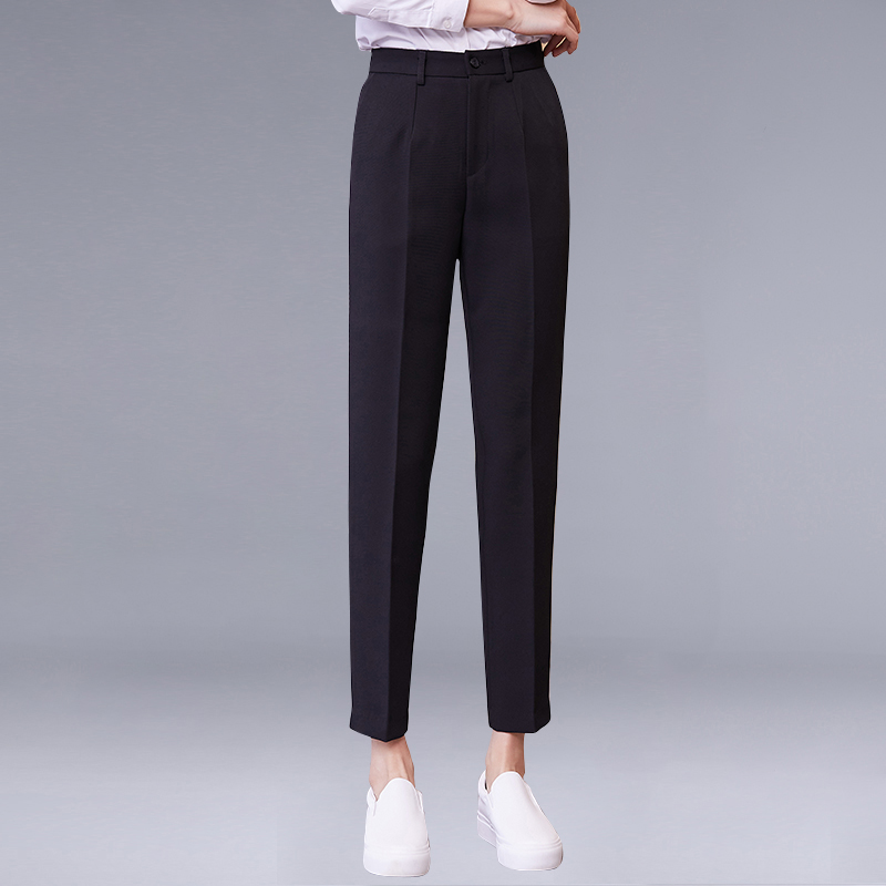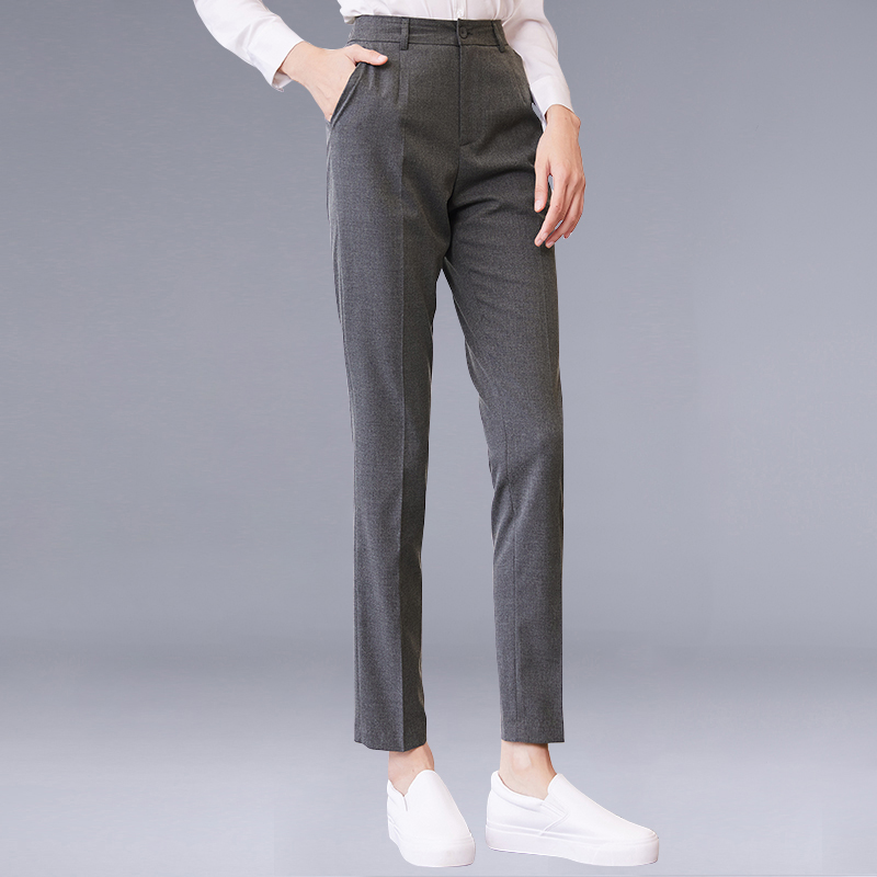 Summer black cropped trousers summer gray cropped trousers spring and autumn black cropped trousers spring and autumn black straight-leg trousers spring and autumn black straight-leg trousers elastic waist