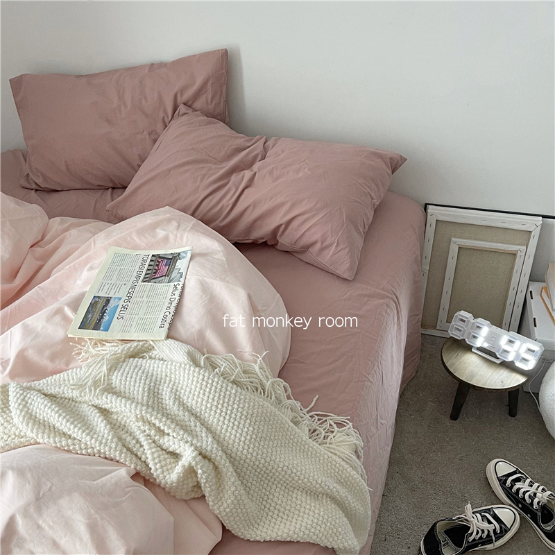 Exclusive color matching ins mixed leather powder cherry blossom powder contrast cotton washed cotton muted four-piece set single three-piece style