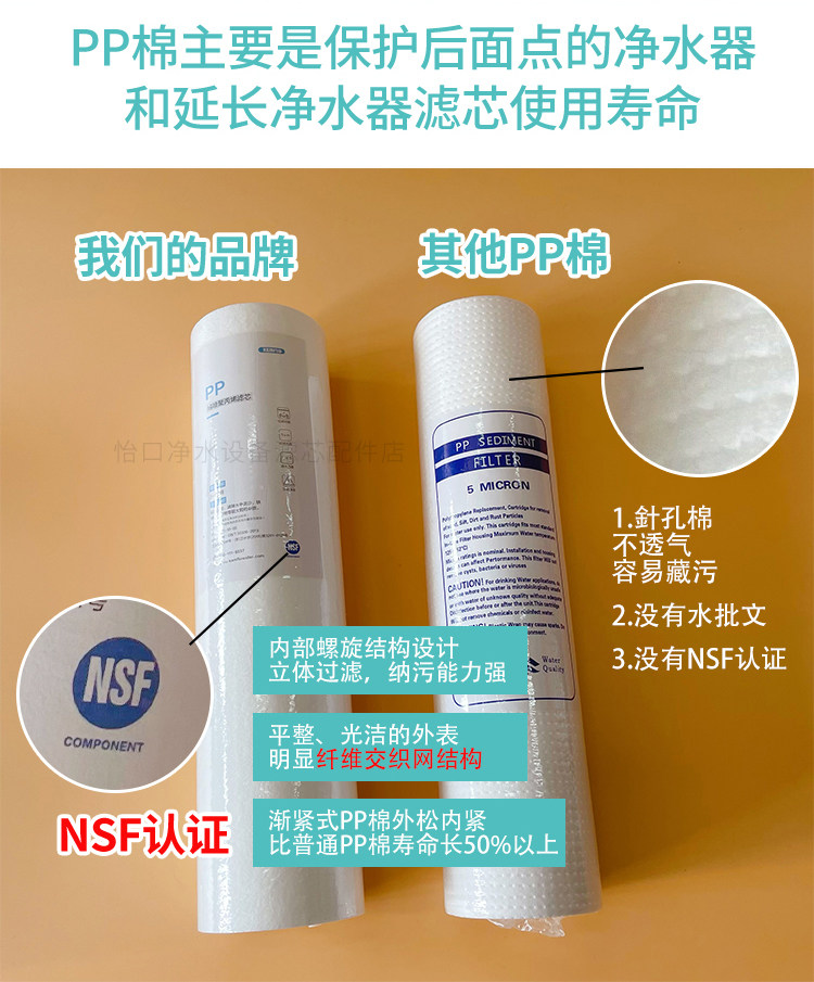 American Yikou ECOWATER pre-filter bottle 10 inch PP cotton universal filter element NSF food filter material accuracy 1 micron