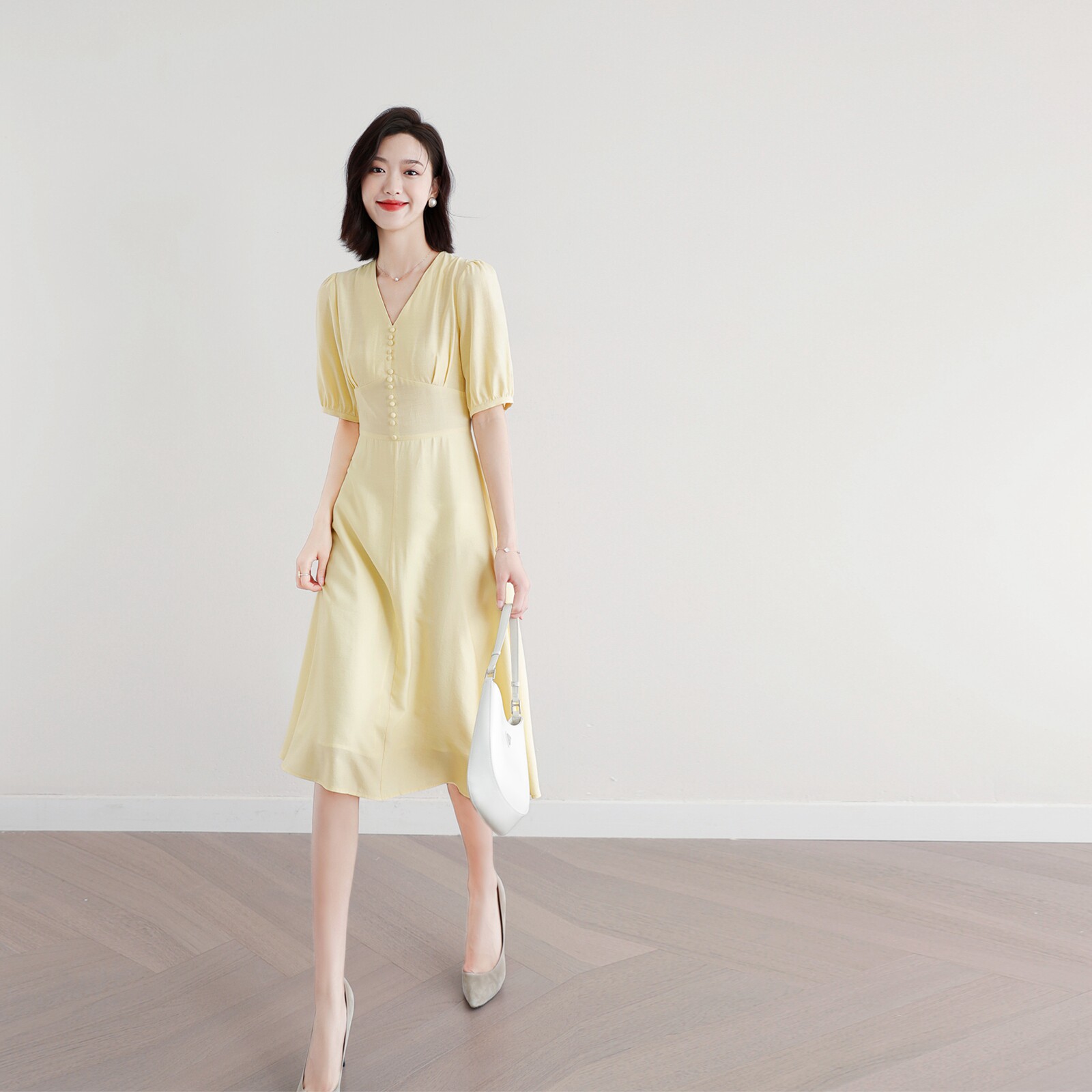 LOSTSOULS Japanese gentle goddess style long skirt 2021 summer white V-neck MID-length tea break dress