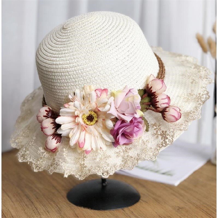 Cosmos lace retro straw hat milk white cosmos lace retro straw hat beige cosmos lace retro straw hat khaki coffee rice two cosmos lace retro straw hat milk yellow yellow and white two cosmos lace retro