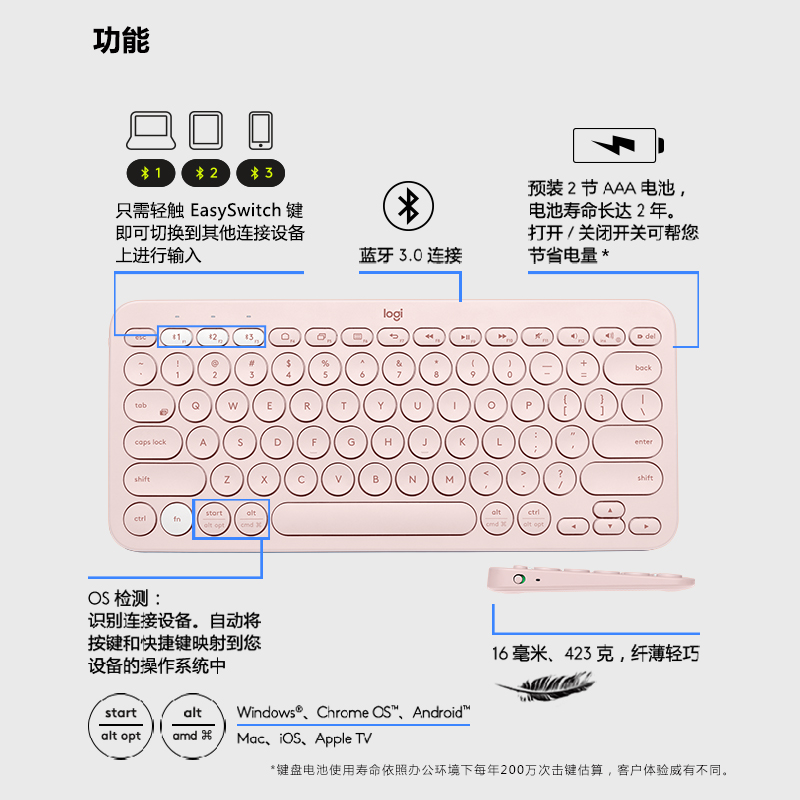 (Shunfeng) Roskill K380 wireless Bluetooth keyboard portable phone notebook office girl ipad multicolored