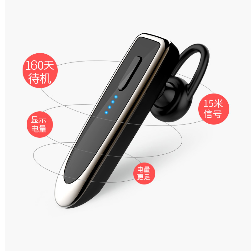 Wireless Bluetooth Headset Single Ear Long Standby Battery Life Car Business Driving Special Newspaper Name Ear-hook Large Battery Applicable Xiaomi Oppo Huawei Vivo Android Apple Men's and Women's Universal