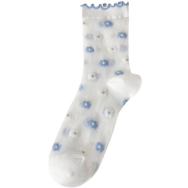 Crystal Glass Silk Socks Children Lace Flowers Edge Flowers Summer Thinness Chains South Korea Sweet and cute Japanese Department Silo Socks