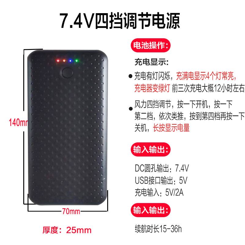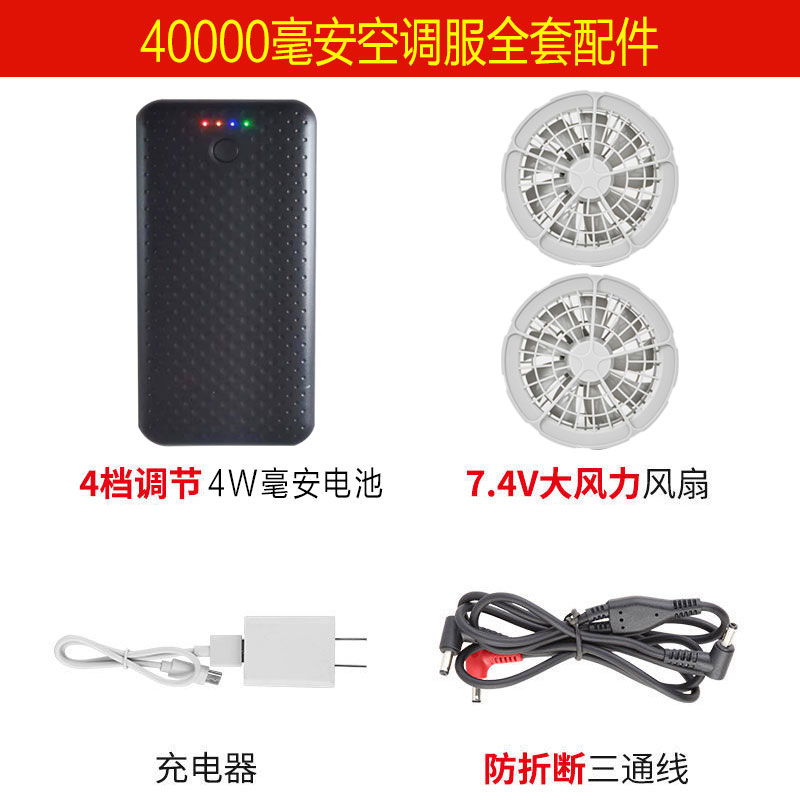 40000mAH super wind power air conditioner suit DC USB dual interface (5V 7 4V) battery fan set