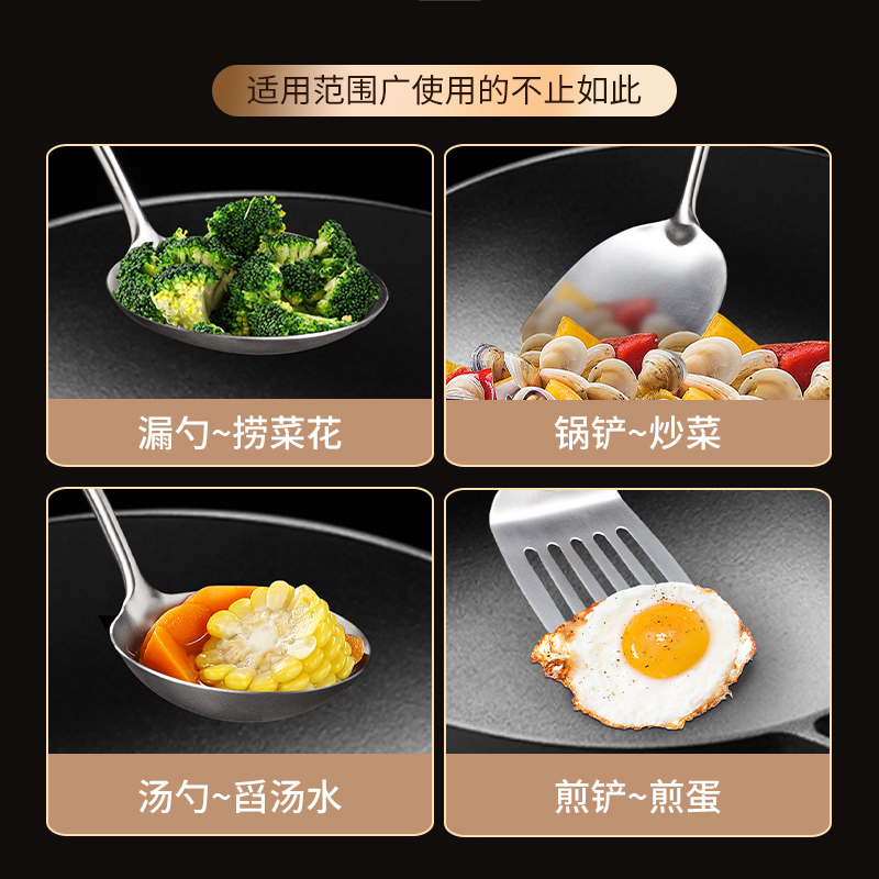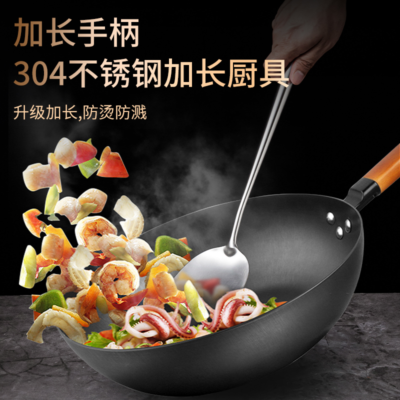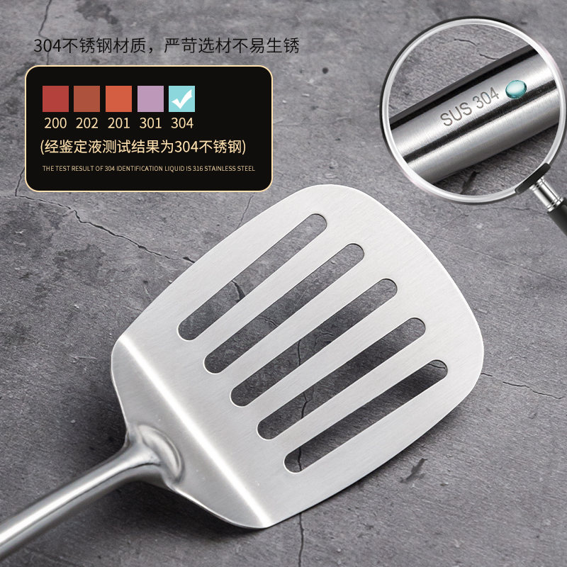 304 stainless steel pot shovel cooking shovel frying spoon long handle household kitchen shovel set thickened anti-scald large