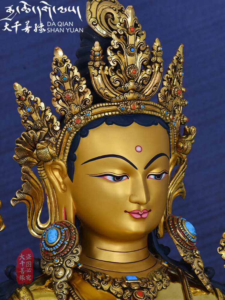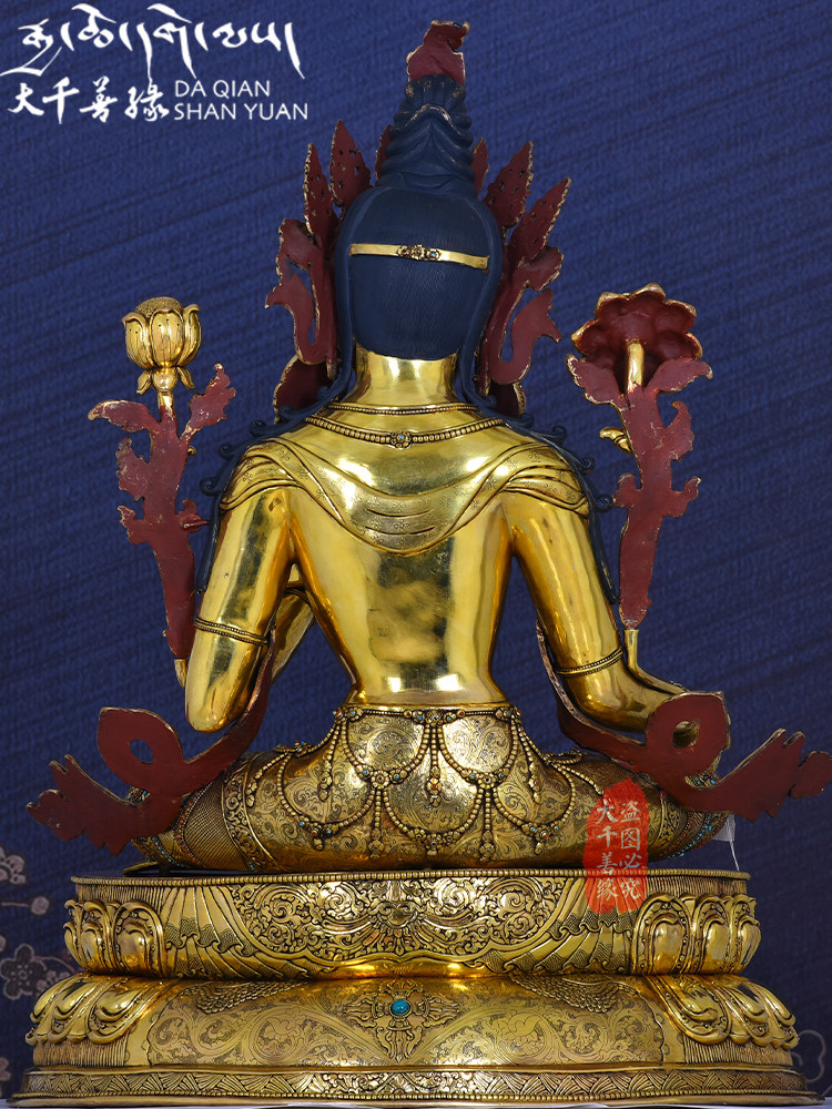 Shakjah image Nepal hand - made copper - gilded 77cm green - female Buddha image of Tibetan Buddha
