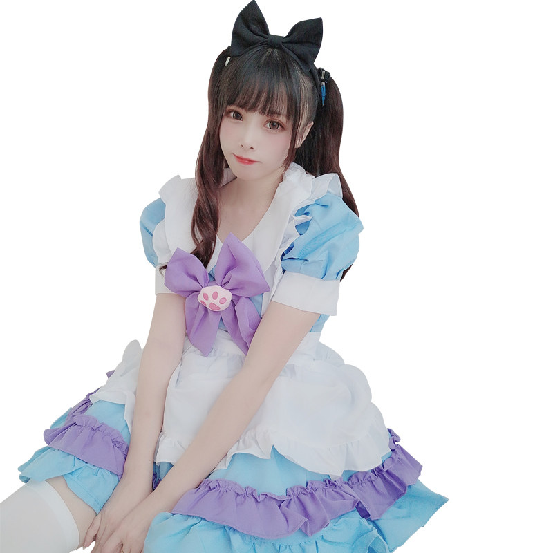 Two-dimensional cosplay costume female Lolita dress large size maid outfit maid outfit summer powder blue suit