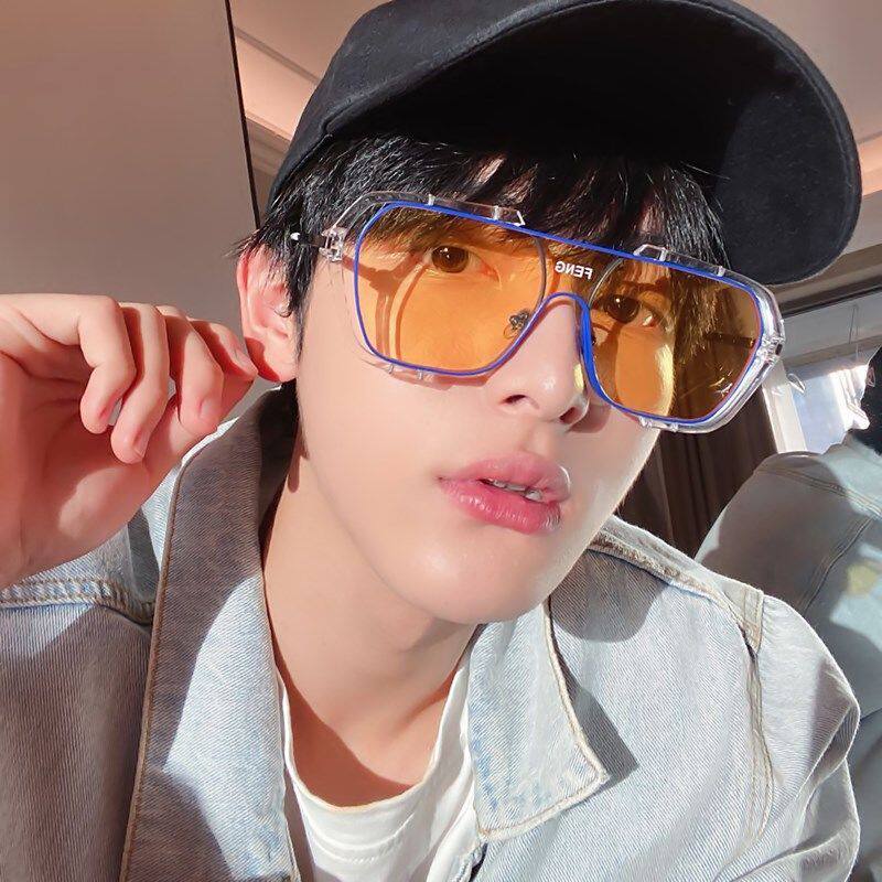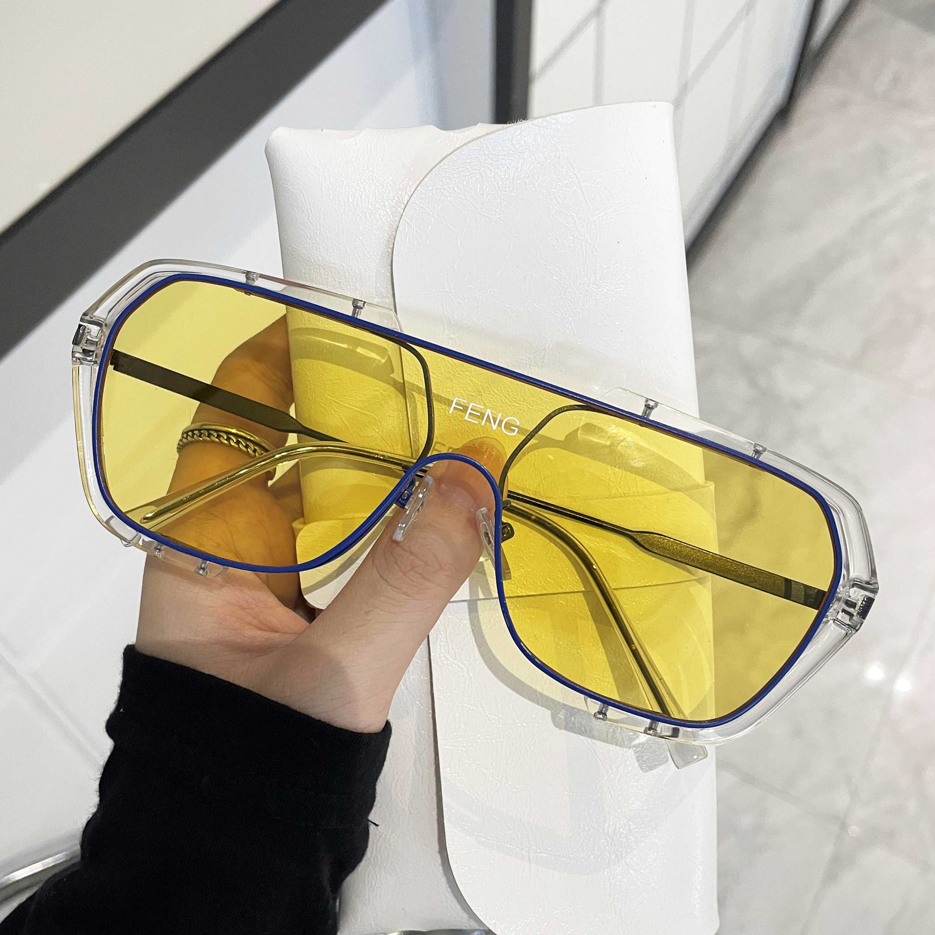 2022 New sunglasses sunglasses men's wave nets red hyphens large frame summer anti-UV intense light driving special