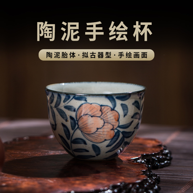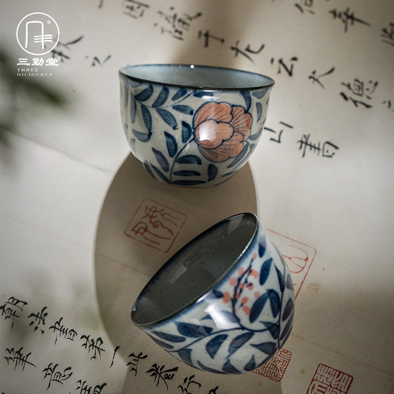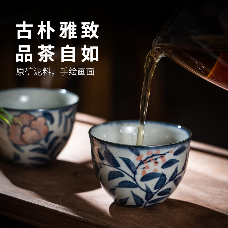 Sanqitang ceramic clay glaze hand-painted tea cup Master Cup Jingdezhen tea set kung fu tea set S42161