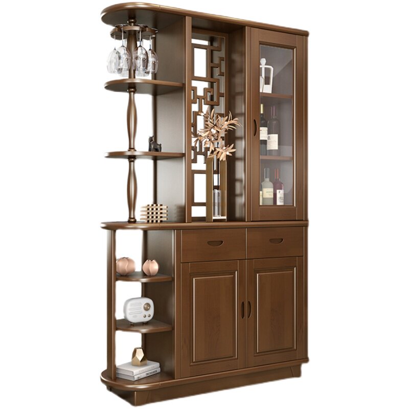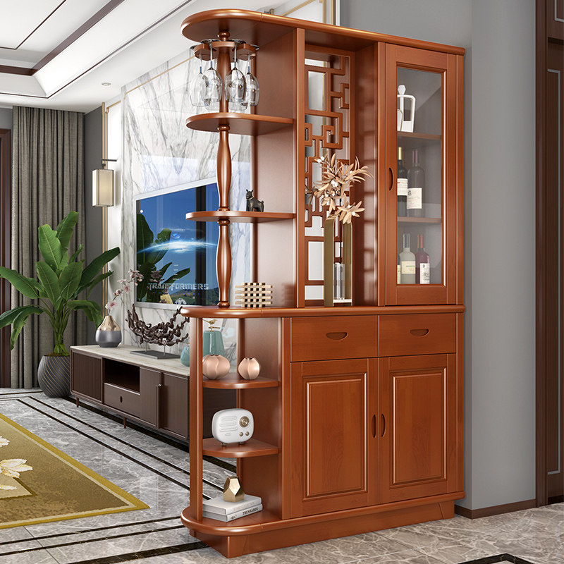 Chinese solid wood room-room cabinet Xuanguan cabinet Double-sided wine cabinet Living room Entry into the door screen partition cabinet Shoe cabinet storage cabinet